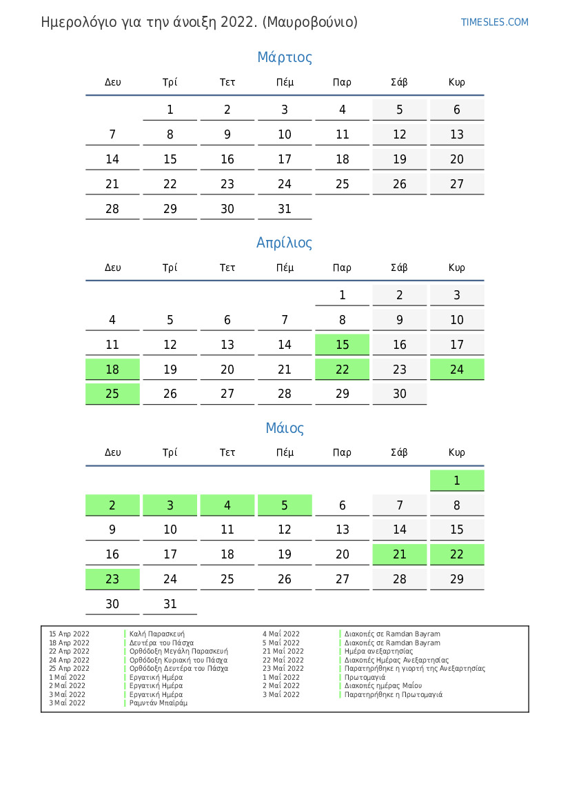 22 Μαΐ 2022 Διακοπές Ημέρας Ανεξαρτησίας