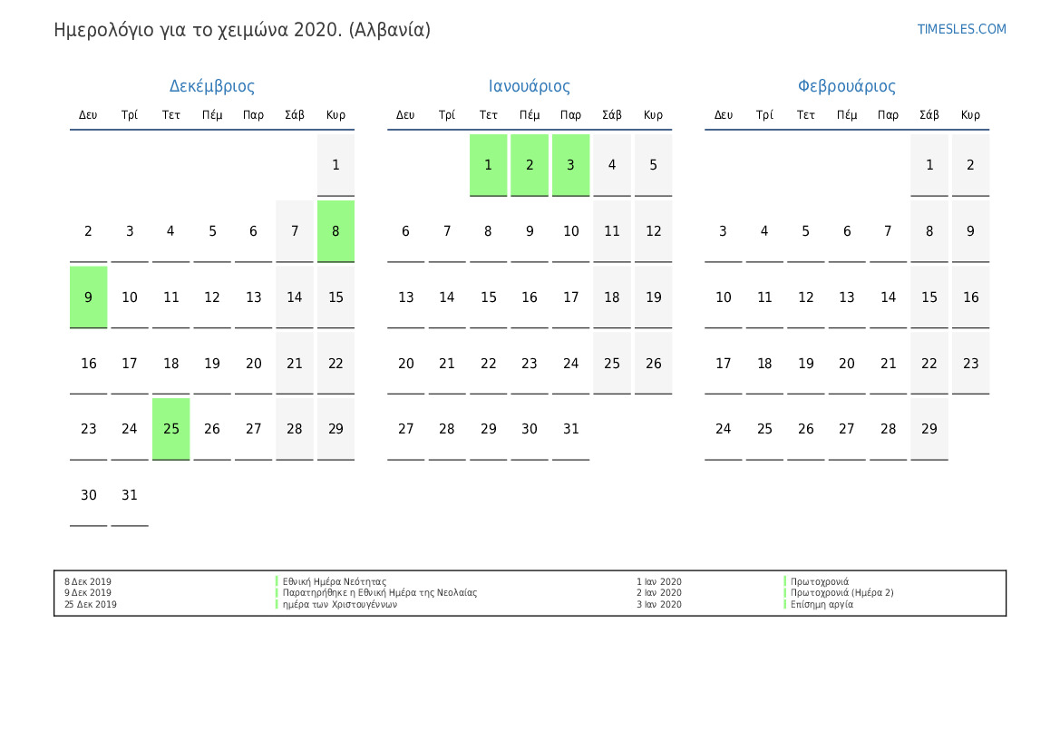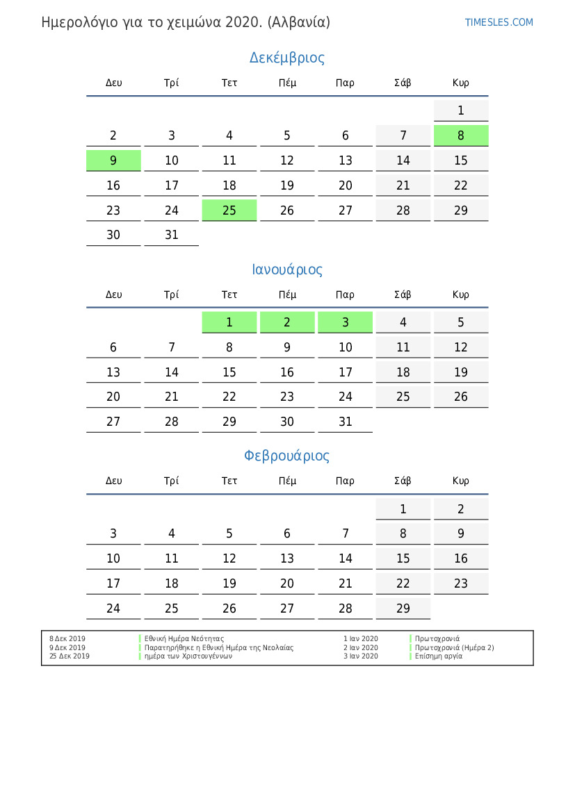 Ημερολόγιο αργιών και σαββατοκύριακων για το καλοκαίρι του 2020 για την Αλβανία