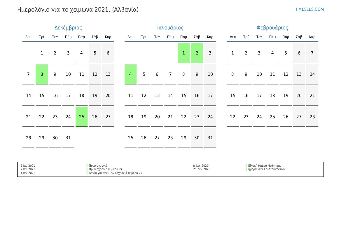 Ημερολόγιο αργιών και σαββατοκύριακων για το καλοκαίρι του 2021 για την Αλβανία