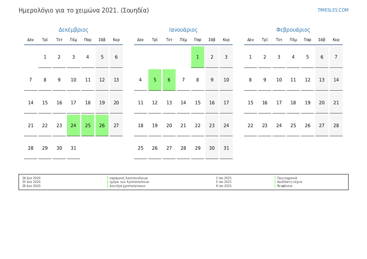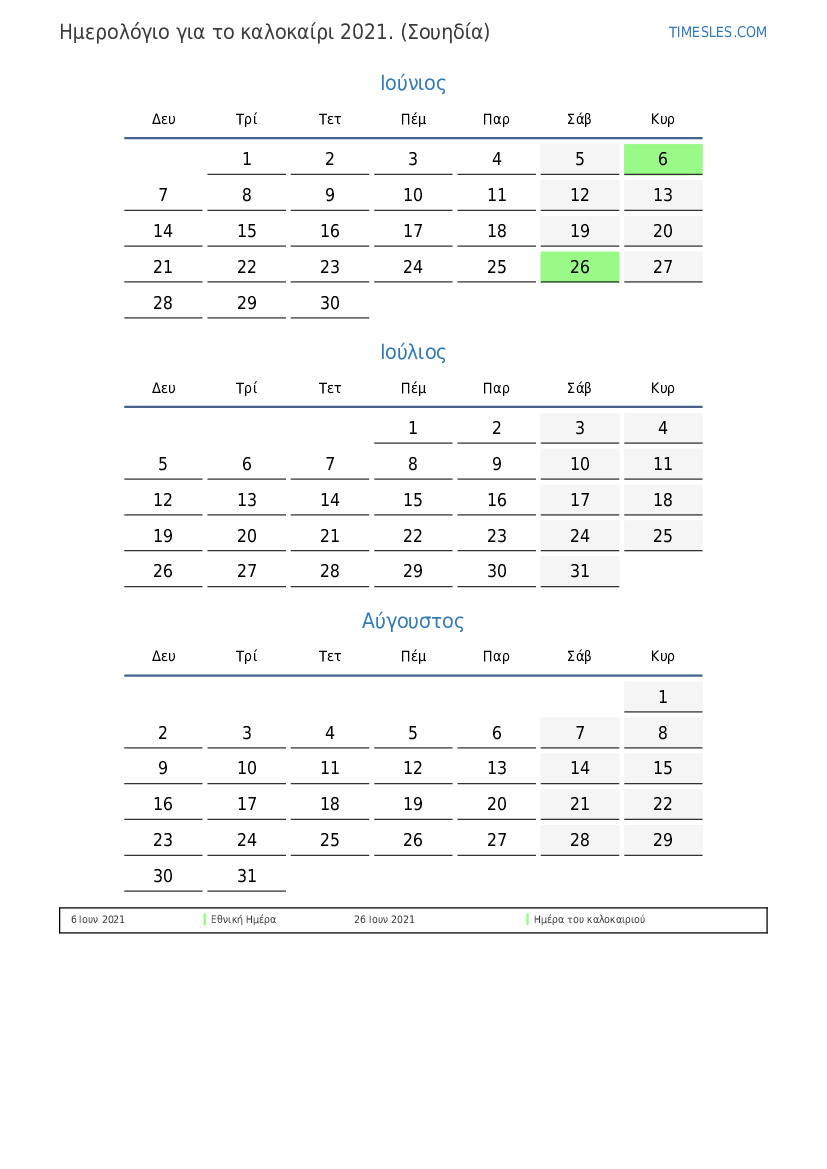 Ημερολόγιο αργιών και σαββατοκύριακων για το καλοκαίρι του 2021 για τη Σουηδία