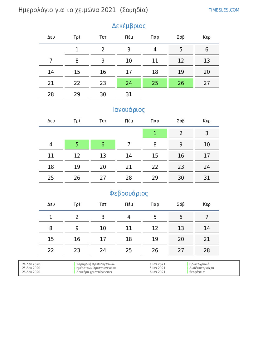 ημερολόγιο τοπίου για το έτος κατά εποχές με διακοπές
