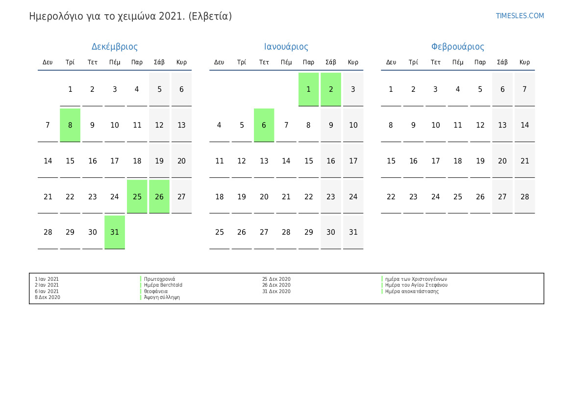 Ημερολόγιο αργιών και σαββατοκύριακων για το καλοκαίρι του 2021 για την Ελβετία