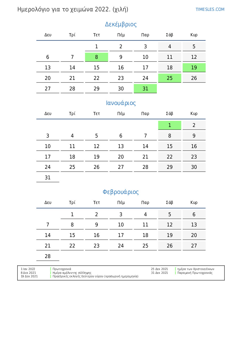 Ημερολόγιο για το χειμώνα 2022 για τη Χιλή