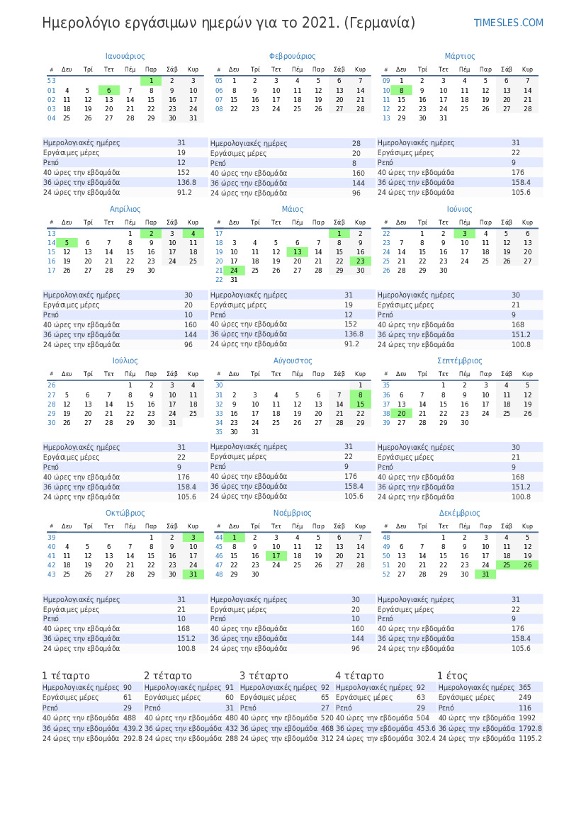 Ημερολόγιο πορτραίτου εργάσιμων ημερών για το έτος