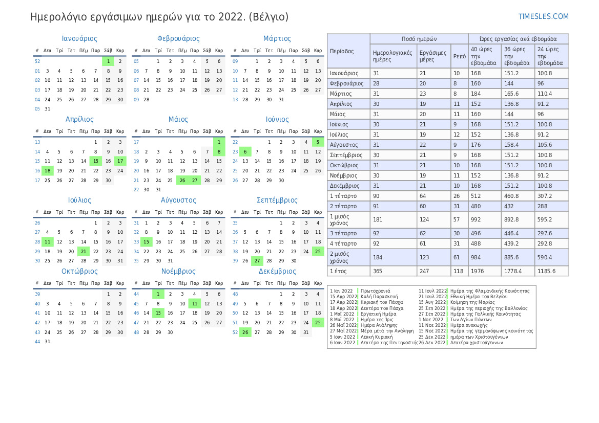 Εργάσιμες ημέρες για τον Απρίλιος του 2022 για το Βέλγιο