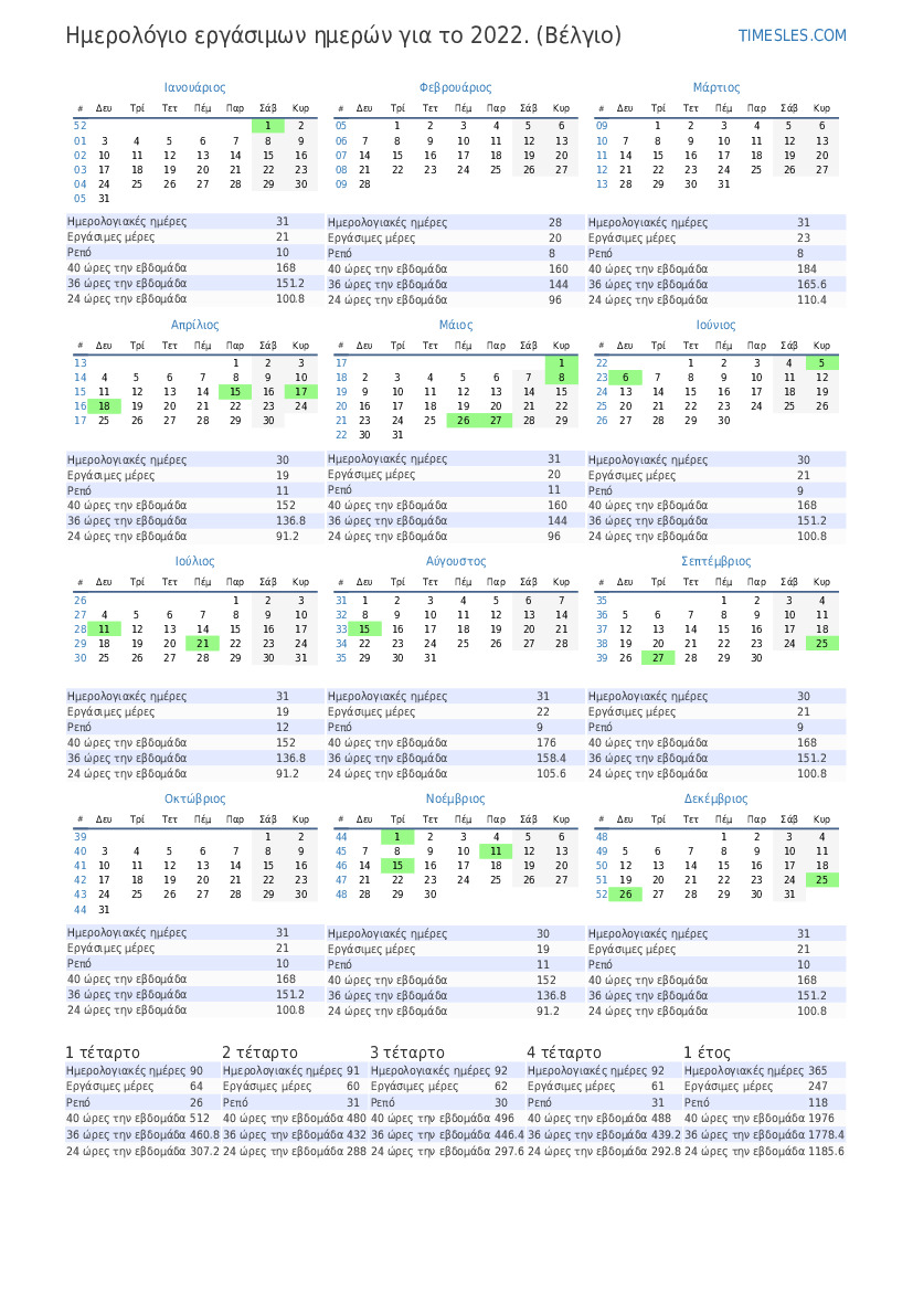 Ημερολόγιο πορτραίτου εργάσιμων ημερών για το έτος