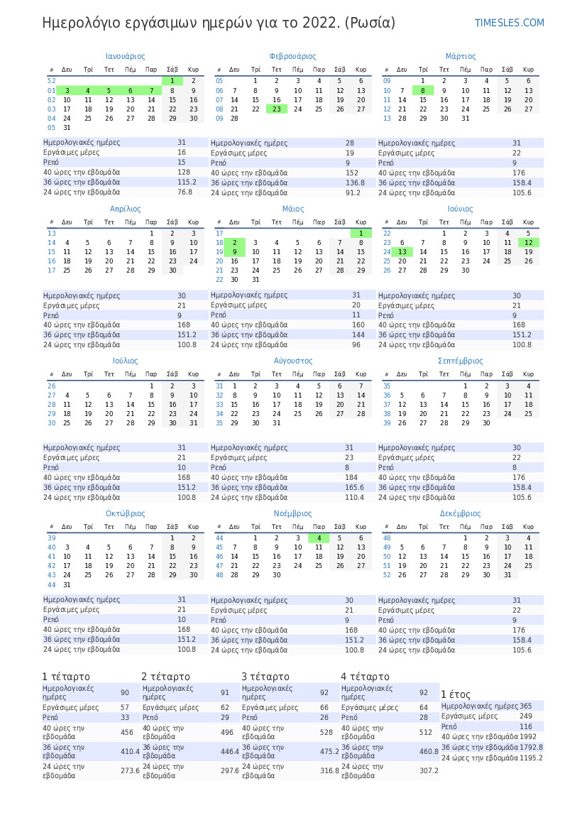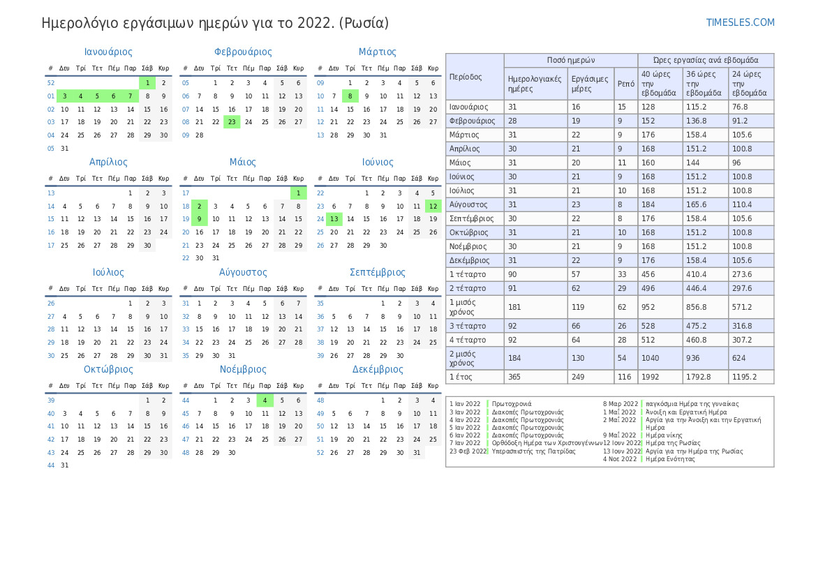 Εργάσιμες ημέρες για τον Ιούλιος του 2022 για τη Ρωσία