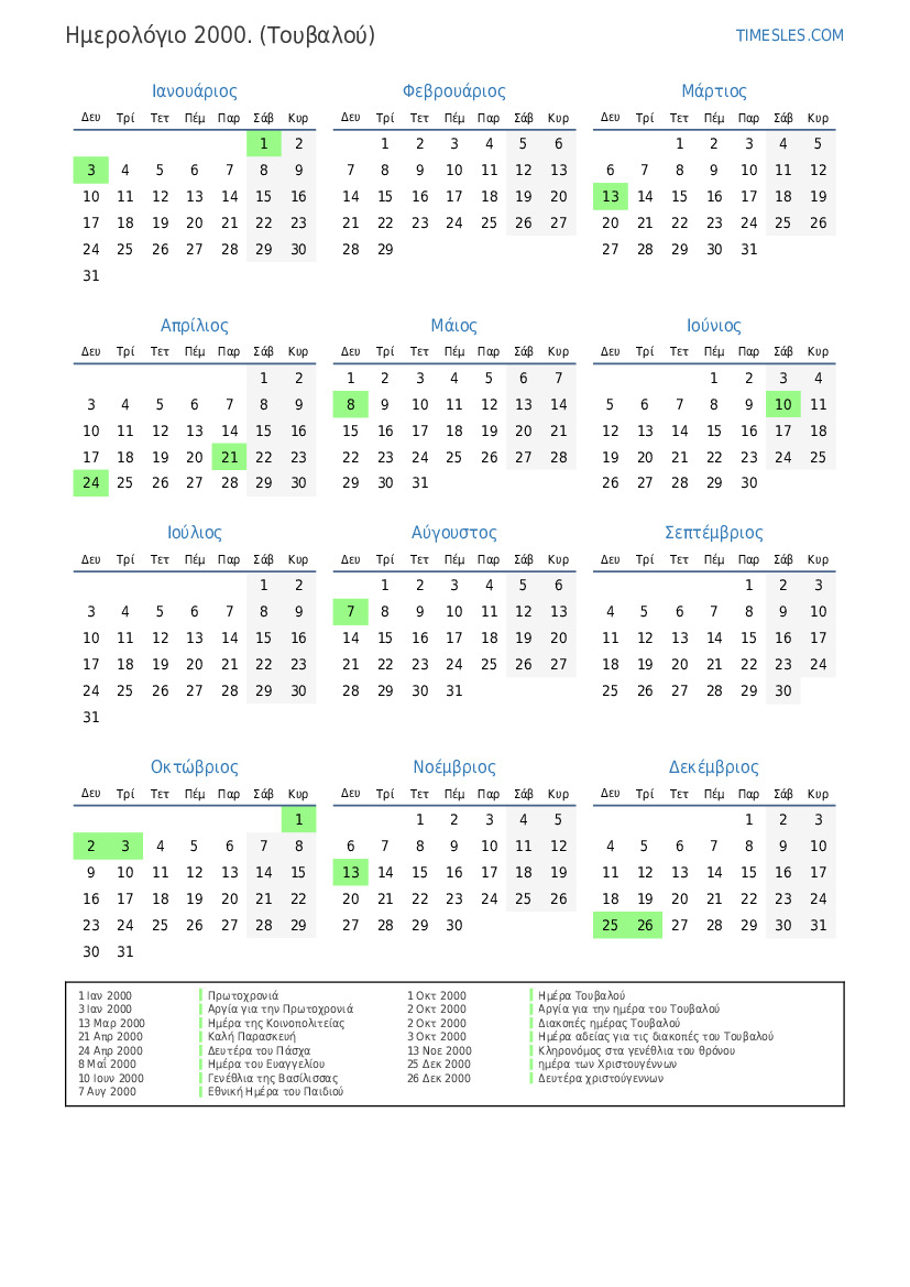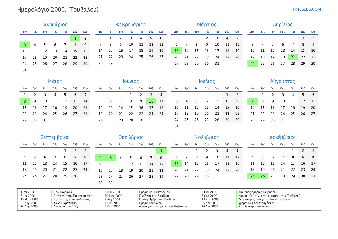 3 Ιαν 2000 Αργία για την Πρωτοχρονιά