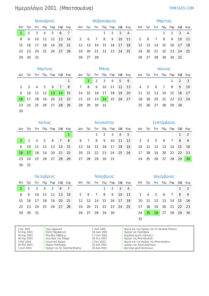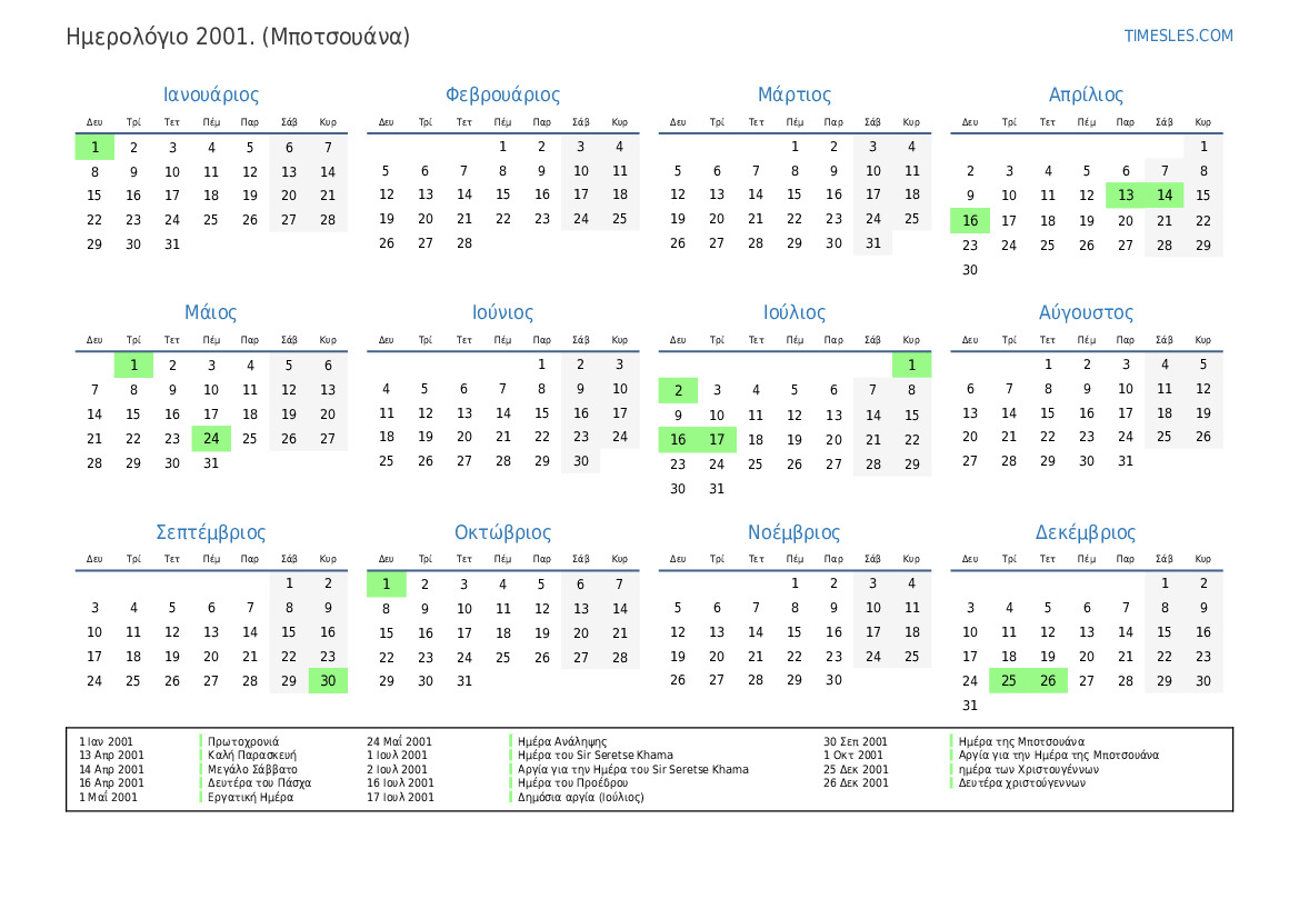 1 Οκτ 2001 Αργία για την Ημέρα της Μποτσουάνα