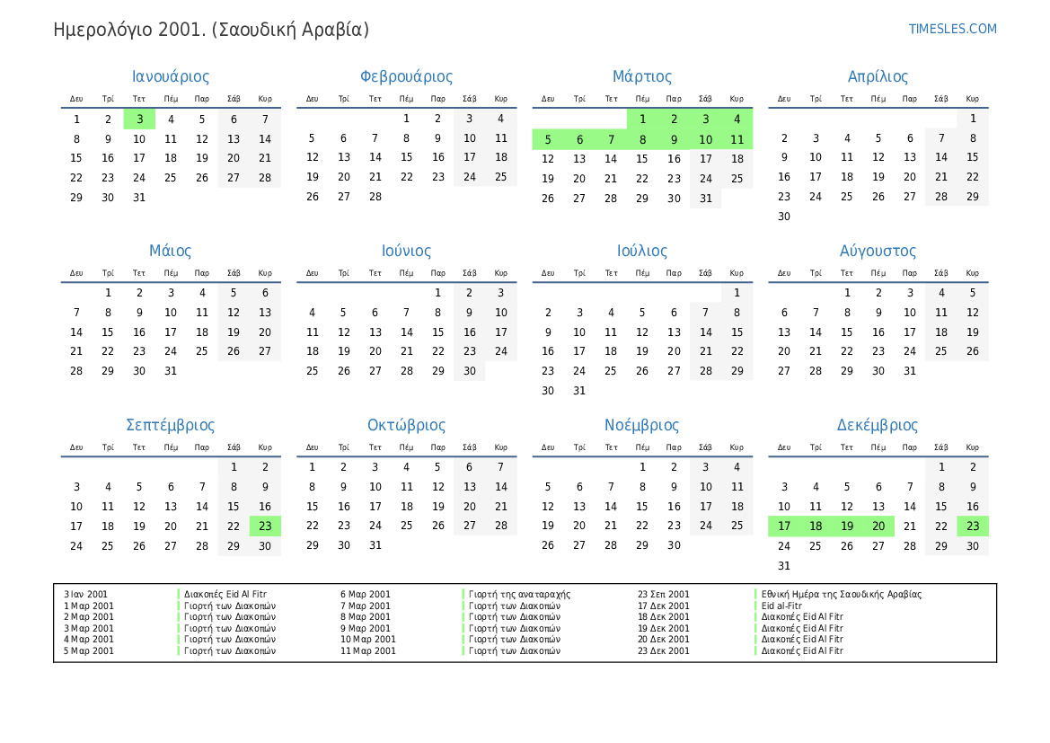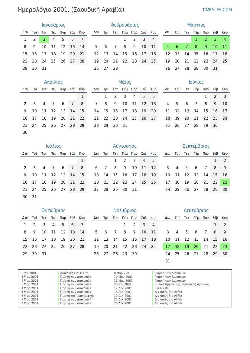 1 Ιαν 2001 Διακοπές Eid al-Fitr (μόνο στον δημόσιο τομέα)