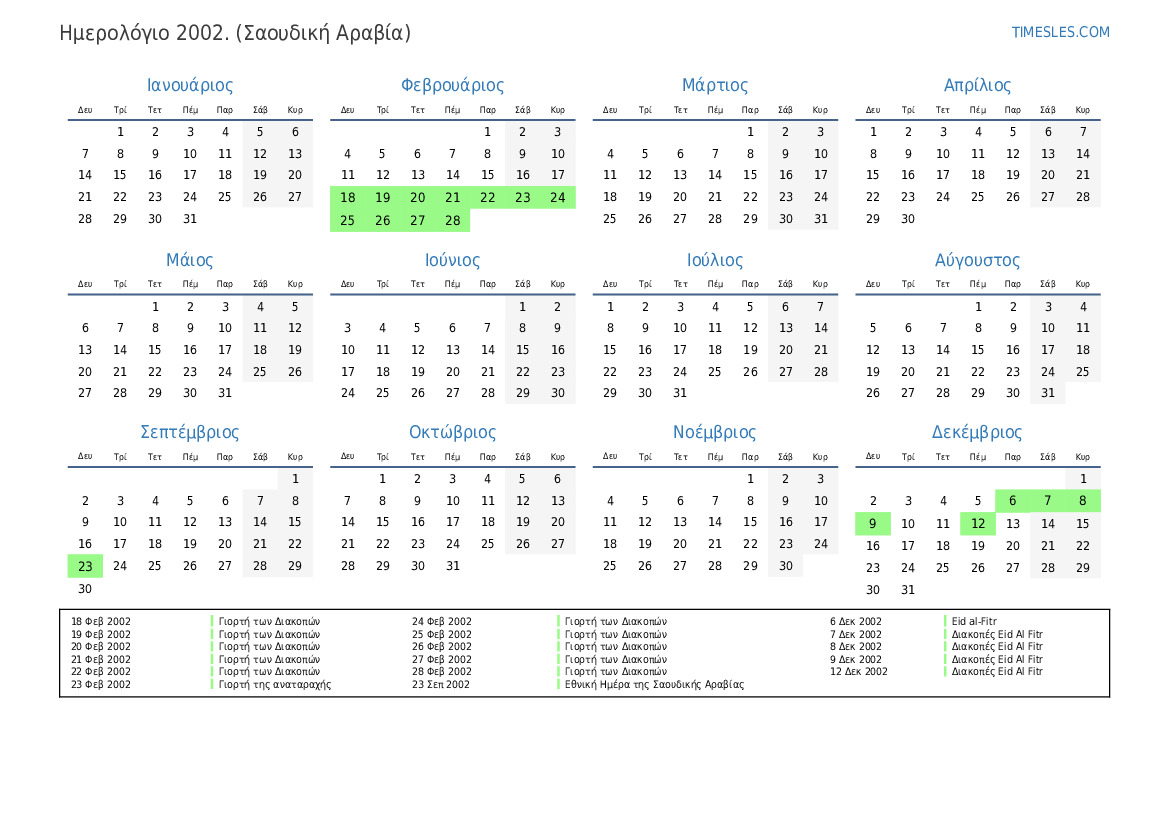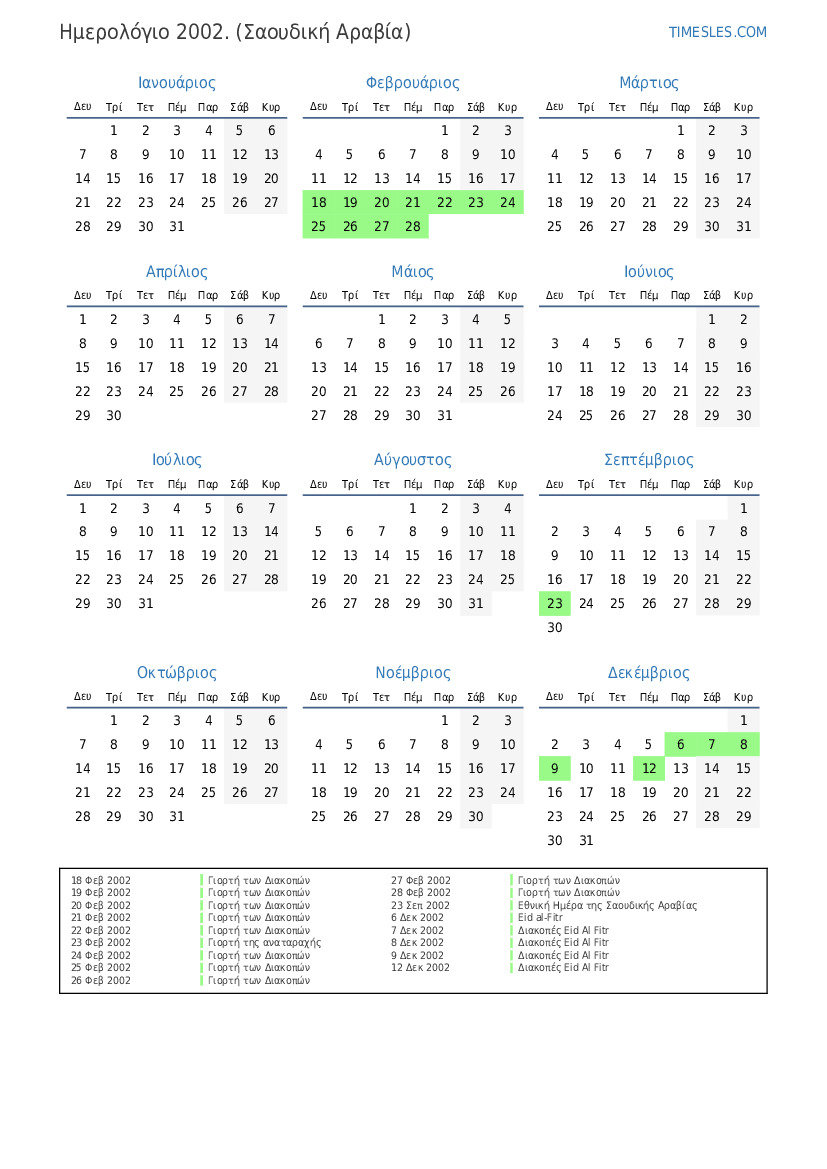 11 Δεκ 2002 Διακοπές Eid al-Fitr (μόνο στον δημόσιο τομέα)