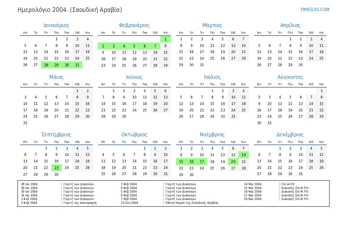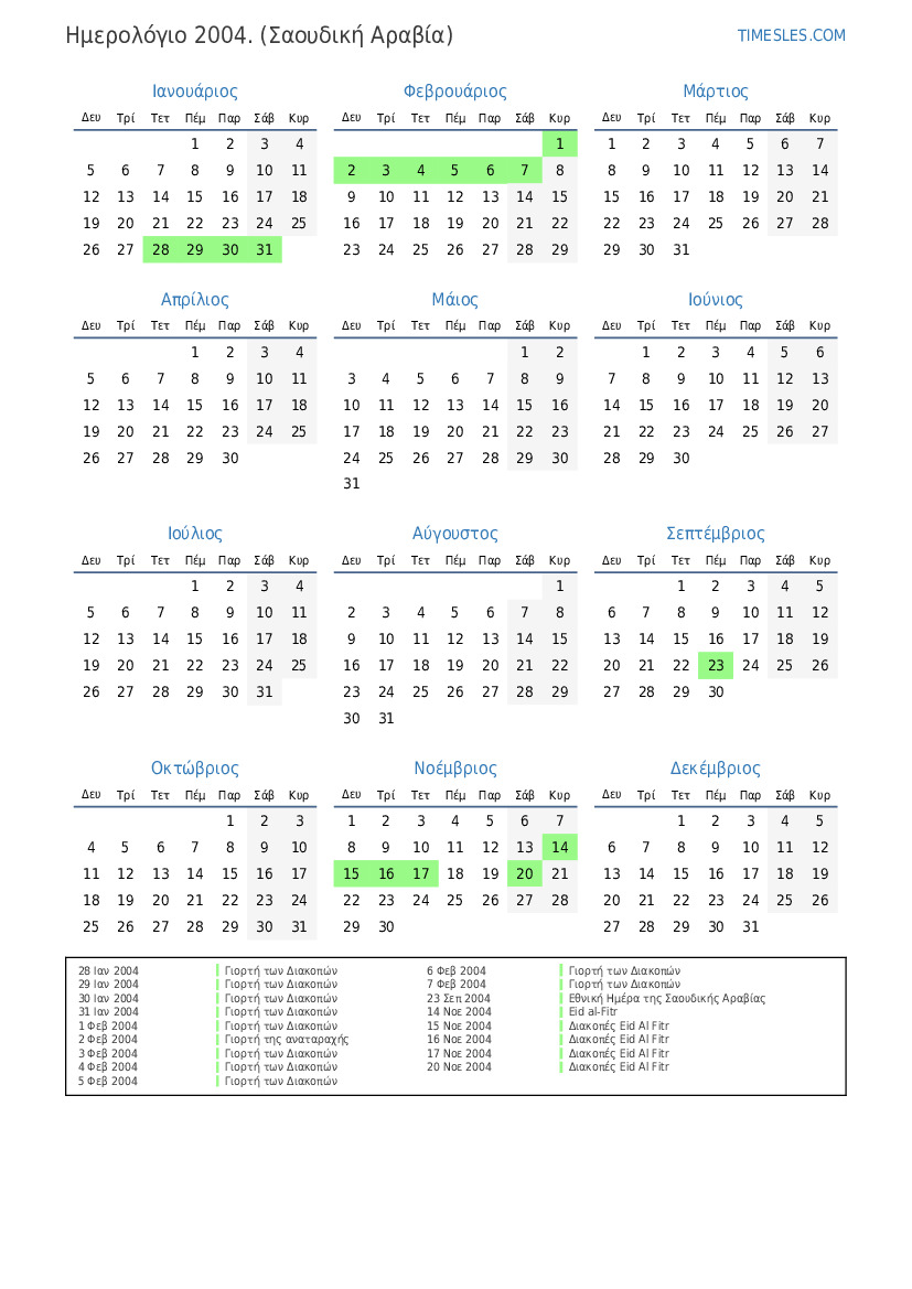19 Νοε 2004 Διακοπές Eid al-Fitr (μόνο στον δημόσιο τομέα)