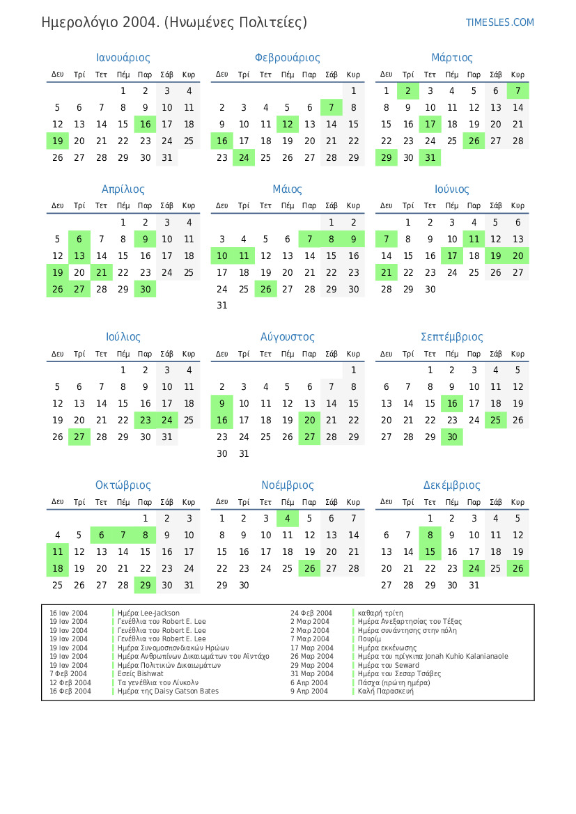 24 Δεκ 2004 Αργία για την ημέρα των Χριστουγέννων