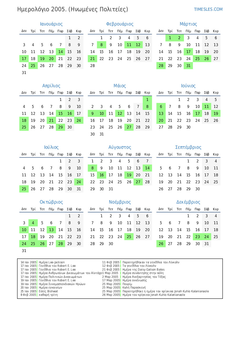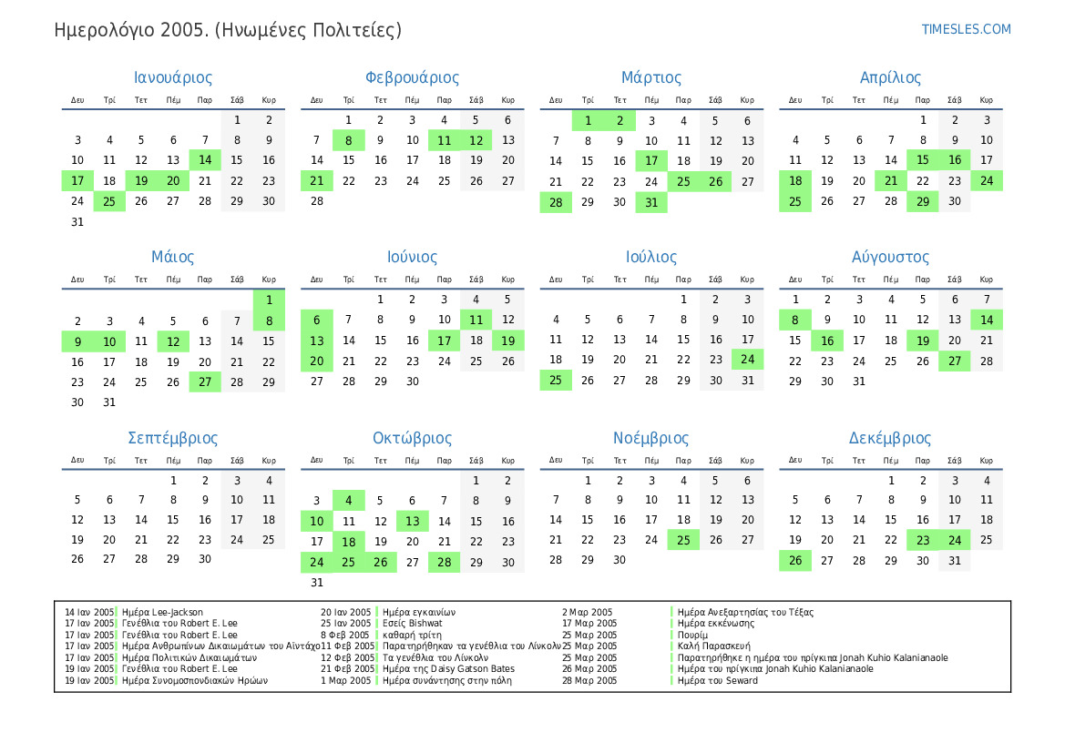 26 Δεκ 2005 Αργία για την ημέρα των Χριστουγέννων