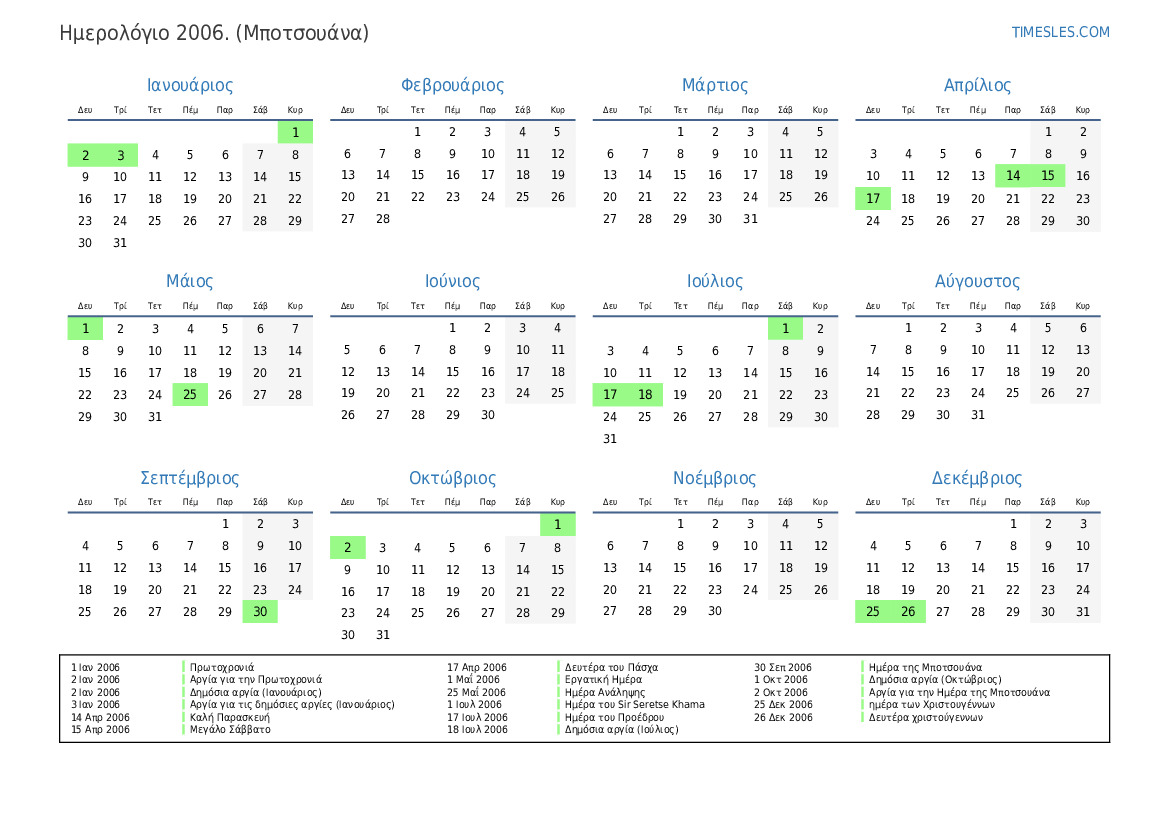 2 Οκτ 2006 Αργία για την Ημέρα της Μποτσουάνα