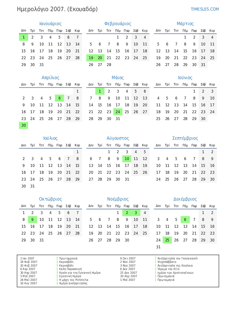 30 Απρ 2007 Αργία για την Εργατική Ημέρα