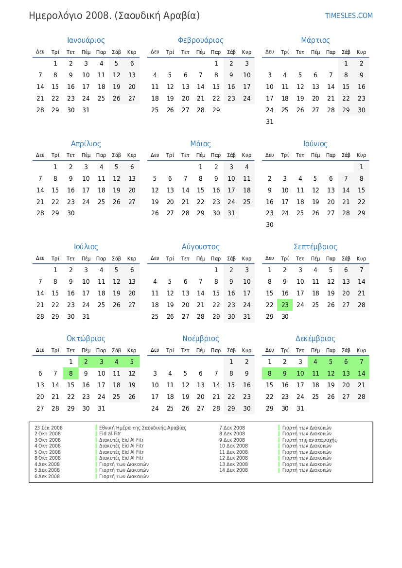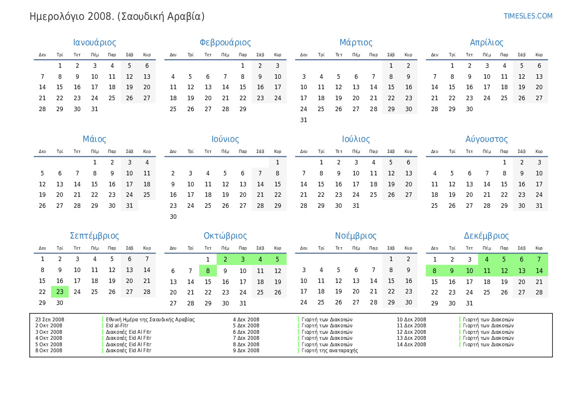 7 Οκτ 2008 Διακοπές Eid al-Fitr (μόνο στον δημόσιο τομέα)