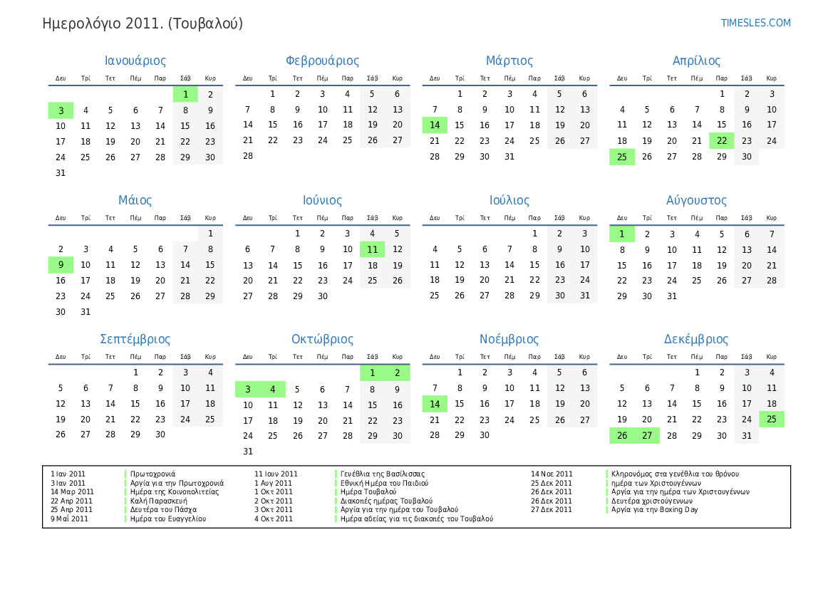 3 Ιαν 2011 Αργία για την Πρωτοχρονιά