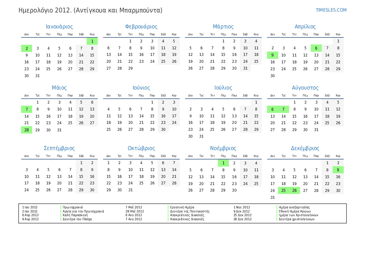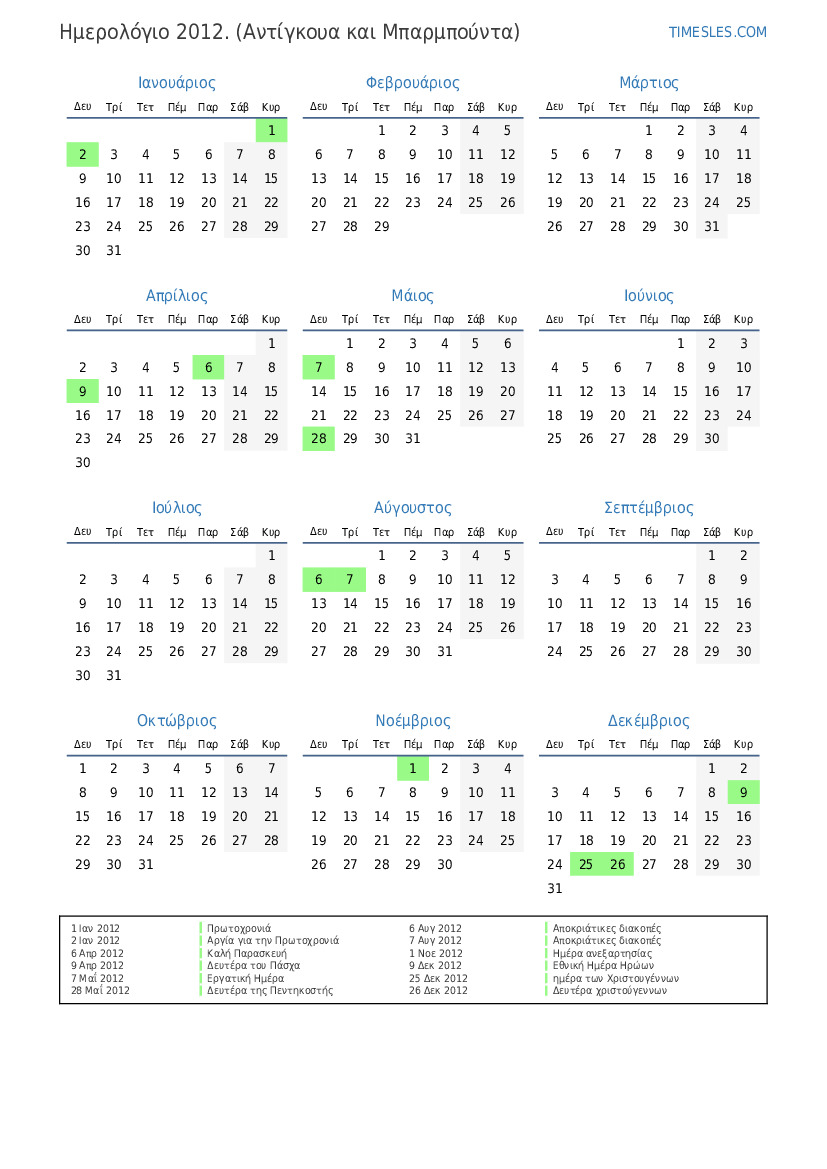 2 Ιαν 2012 Αργία για την Πρωτοχρονιά