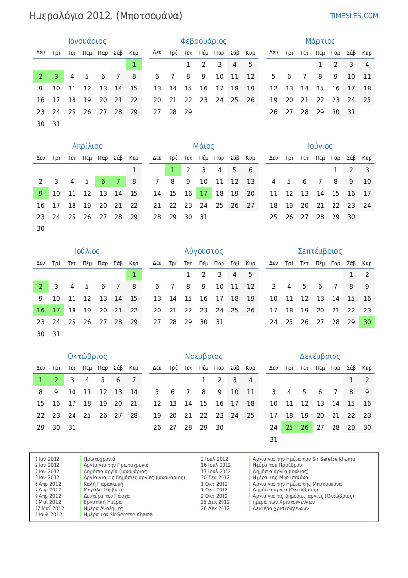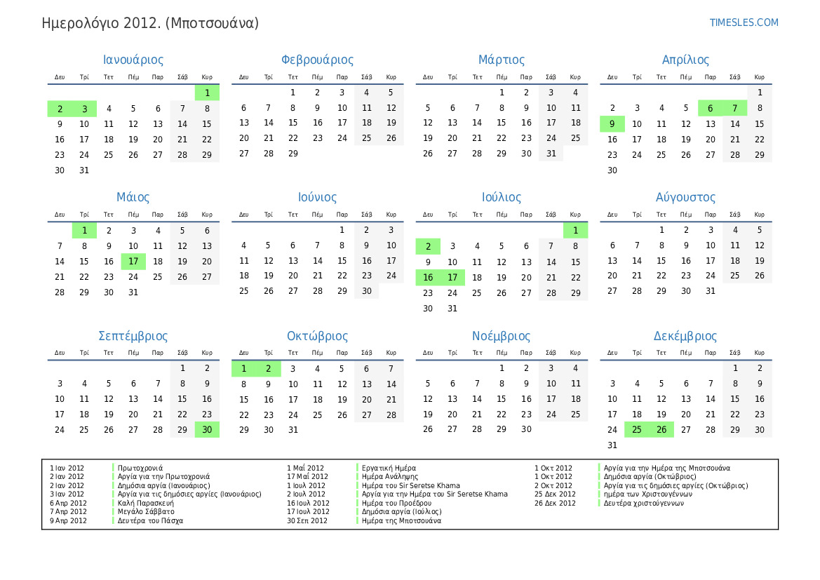 1 Οκτ 2012 Αργία για την Ημέρα της Μποτσουάνα
