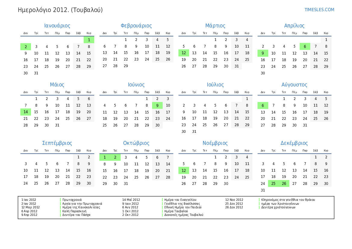 2 Ιαν 2012 Αργία για την Πρωτοχρονιά