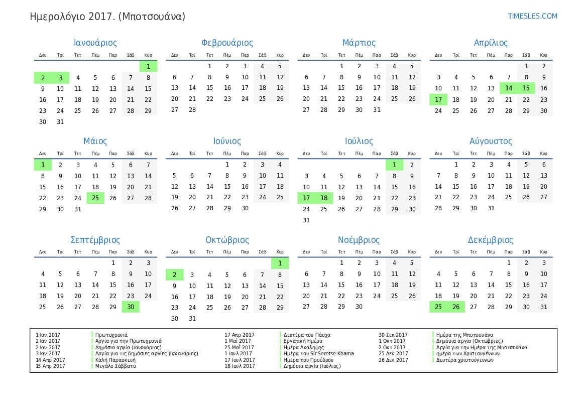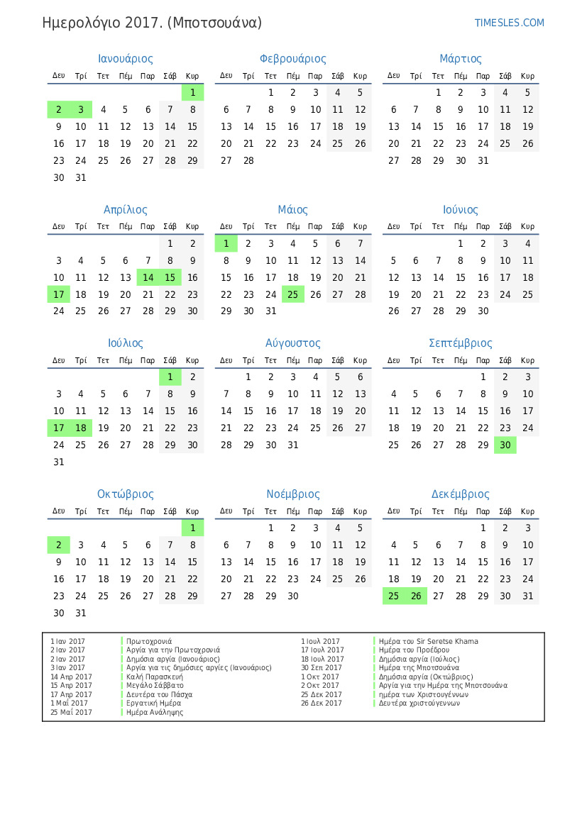 2 Οκτ 2017 Αργία για την Ημέρα της Μποτσουάνα