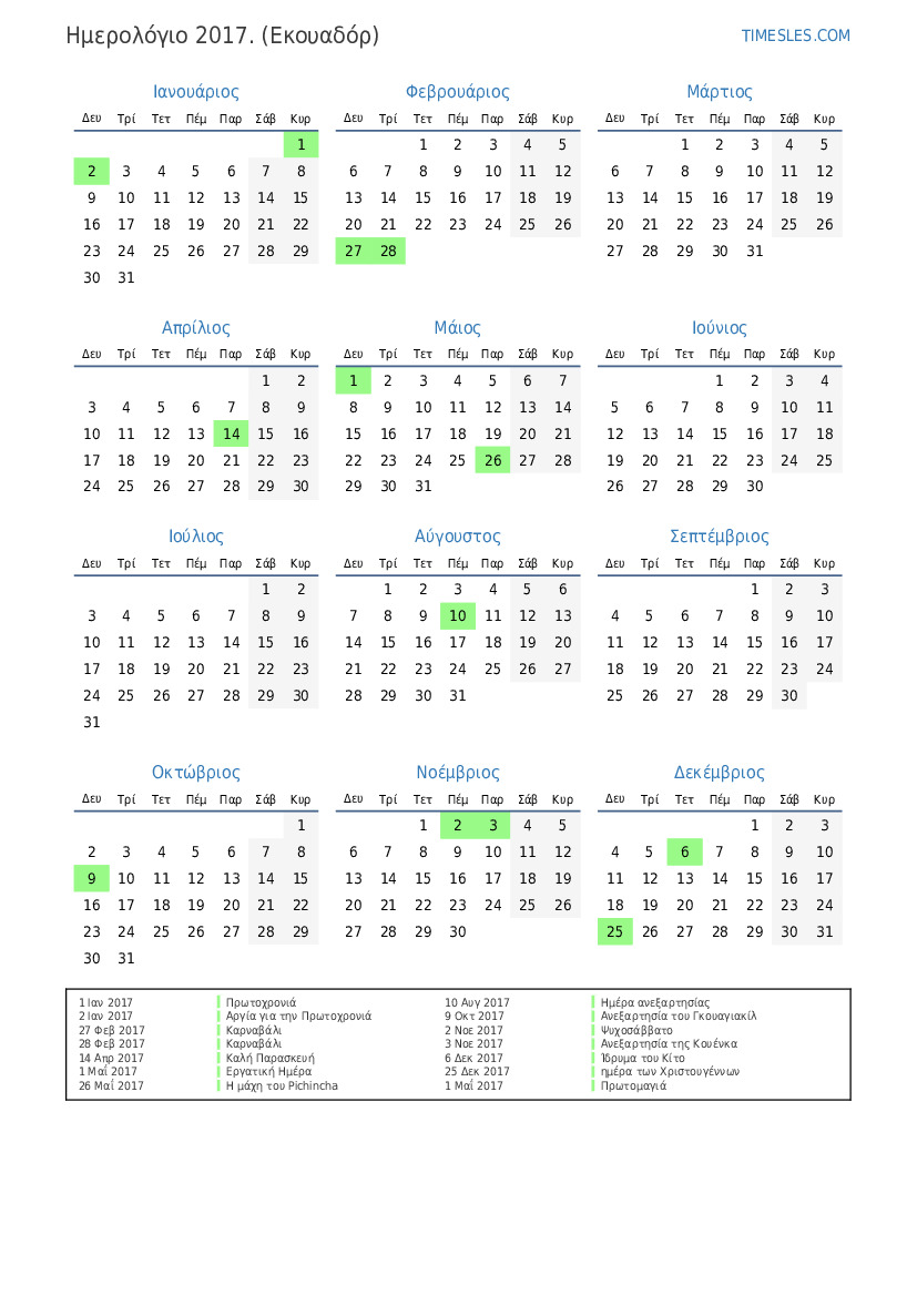 2 Ιαν 2017 Αργία για την Πρωτοχρονιά