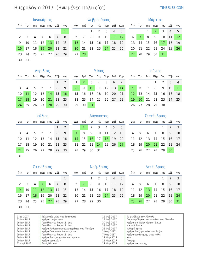 2 Ιαν 2017 Αργία για την Πρωτοχρονιά
