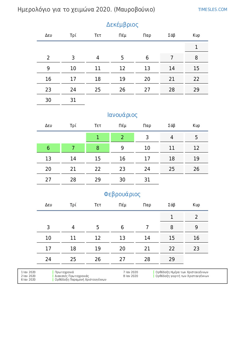2 Ιαν 2020 Διακοπές Πρωτοχρονιάς