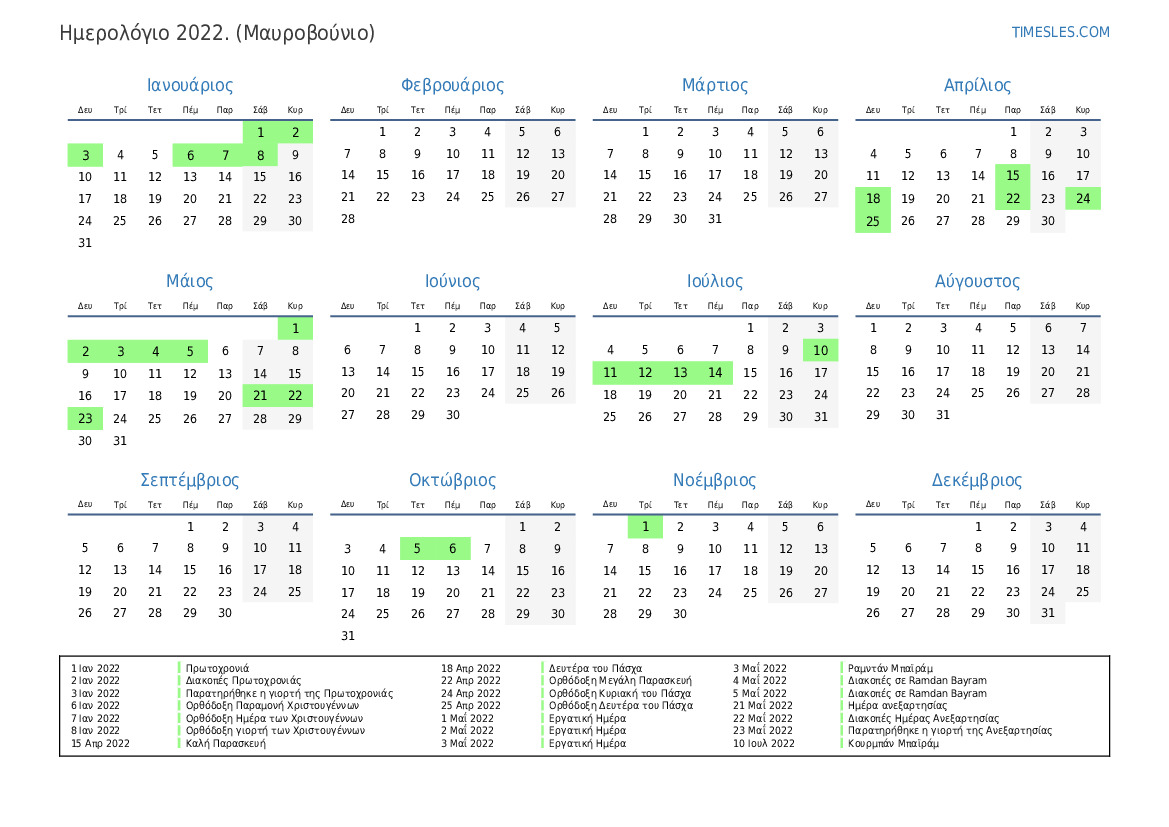 22 Μαΐ 2022 Διακοπές Ημέρας Ανεξαρτησίας