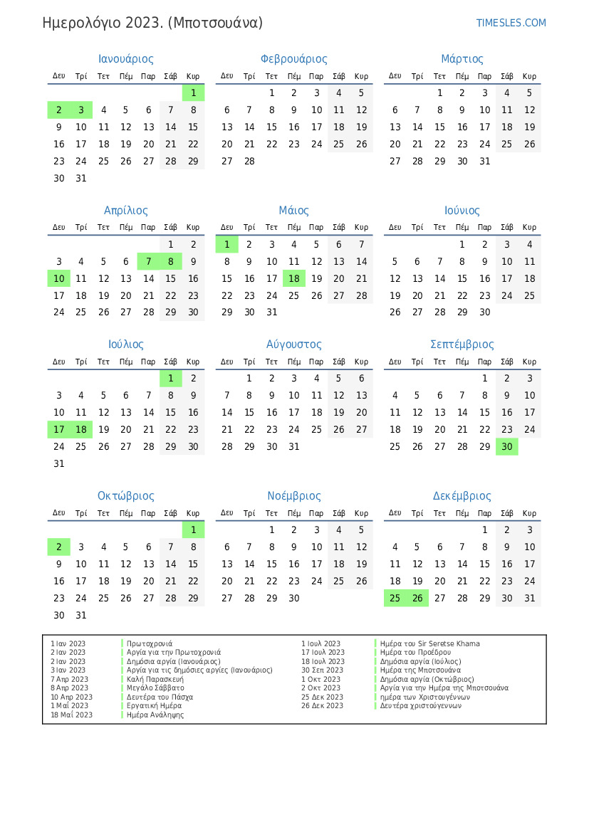 2 Οκτ 2023 Αργία για την Ημέρα της Μποτσουάνα