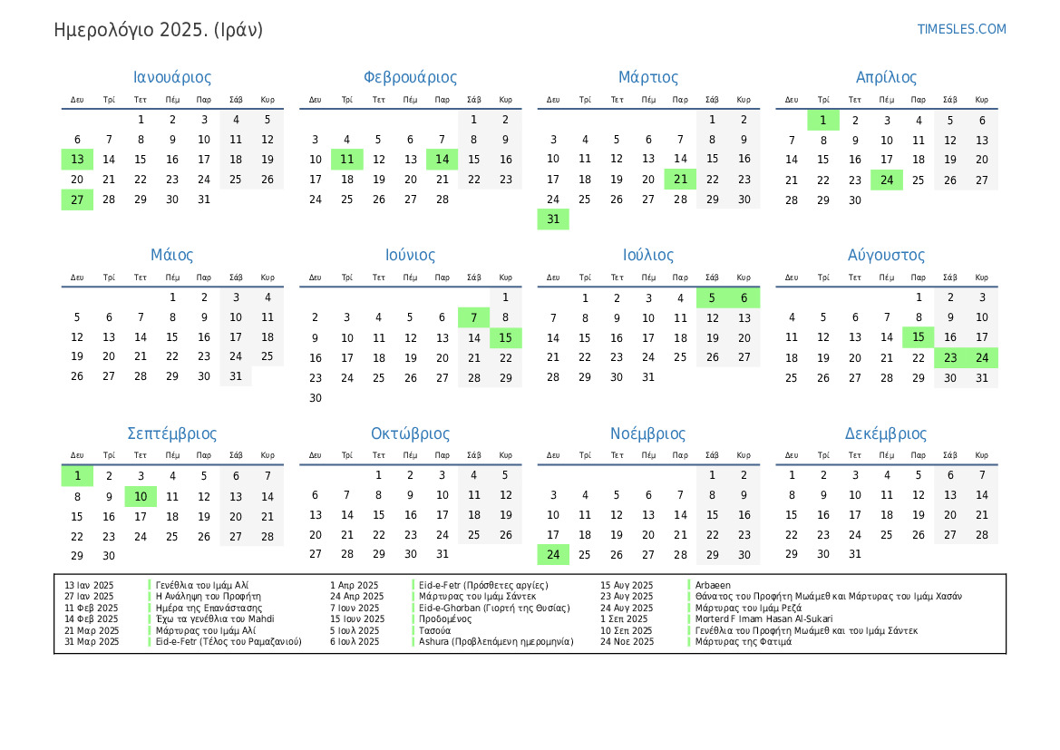 1 Απρ 2025 Eid-e-Fetr (Πρόσθετες αργίες)