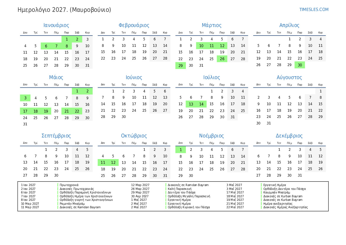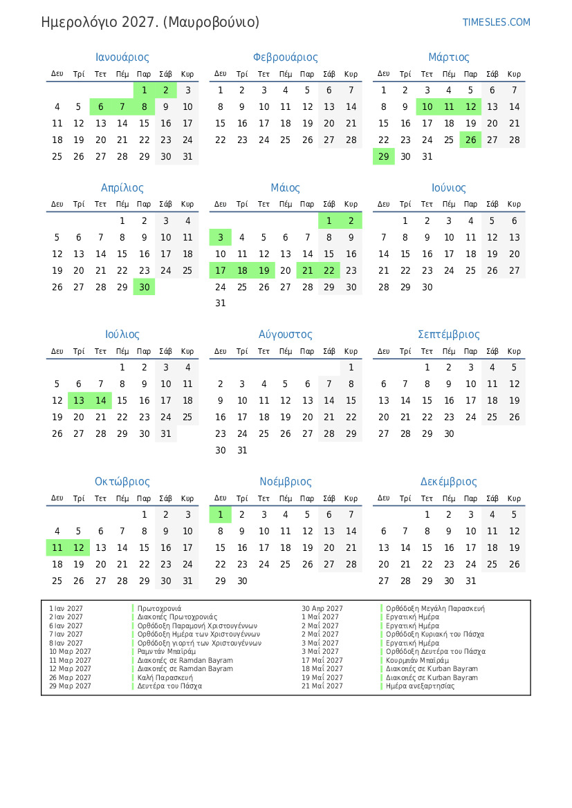 12 Μαρ 2027 Διακοπές σε Ramdan Bayram