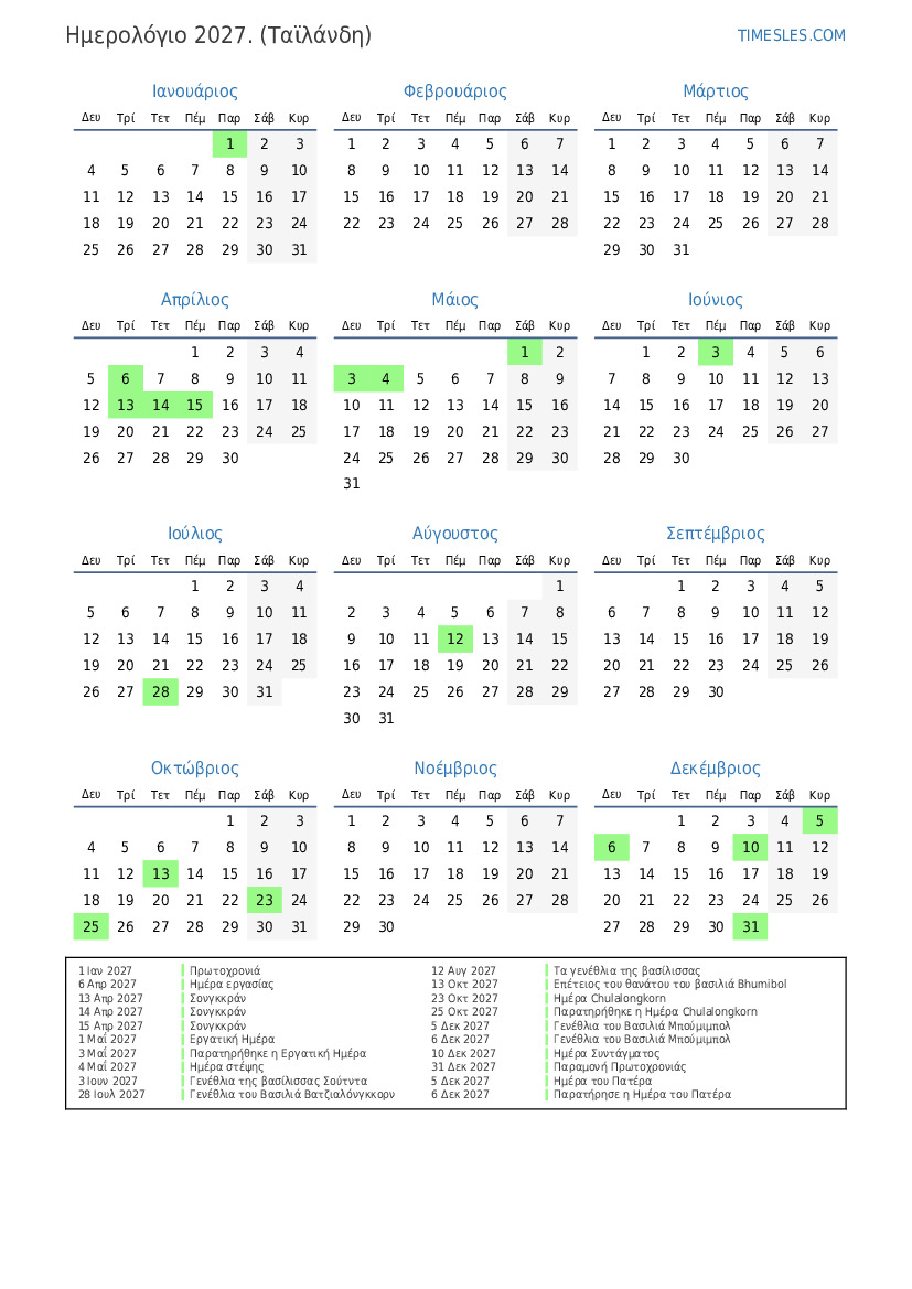28 Ιουλ 2027 Γενέθλια του Βασιλιά Βατζιαλόνγκκορν