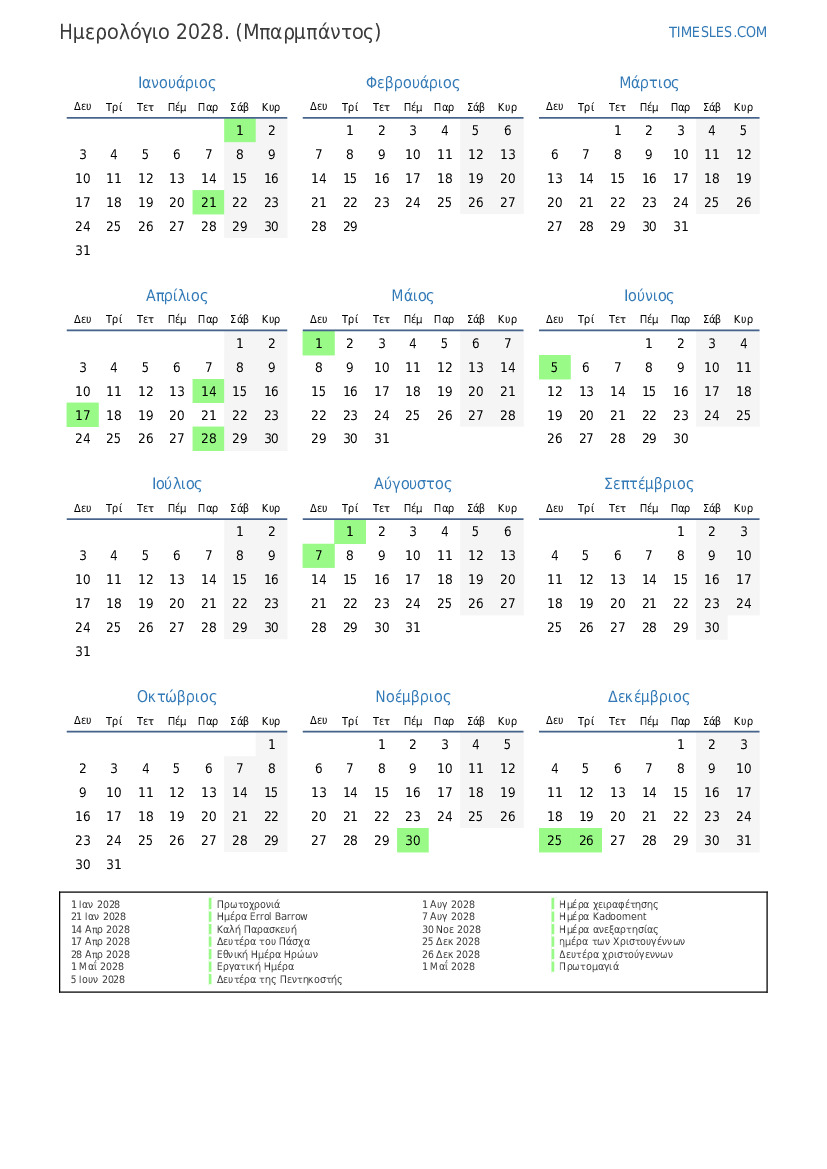 26 Δεκ 2028 Δευτέρα χριστούγεννων