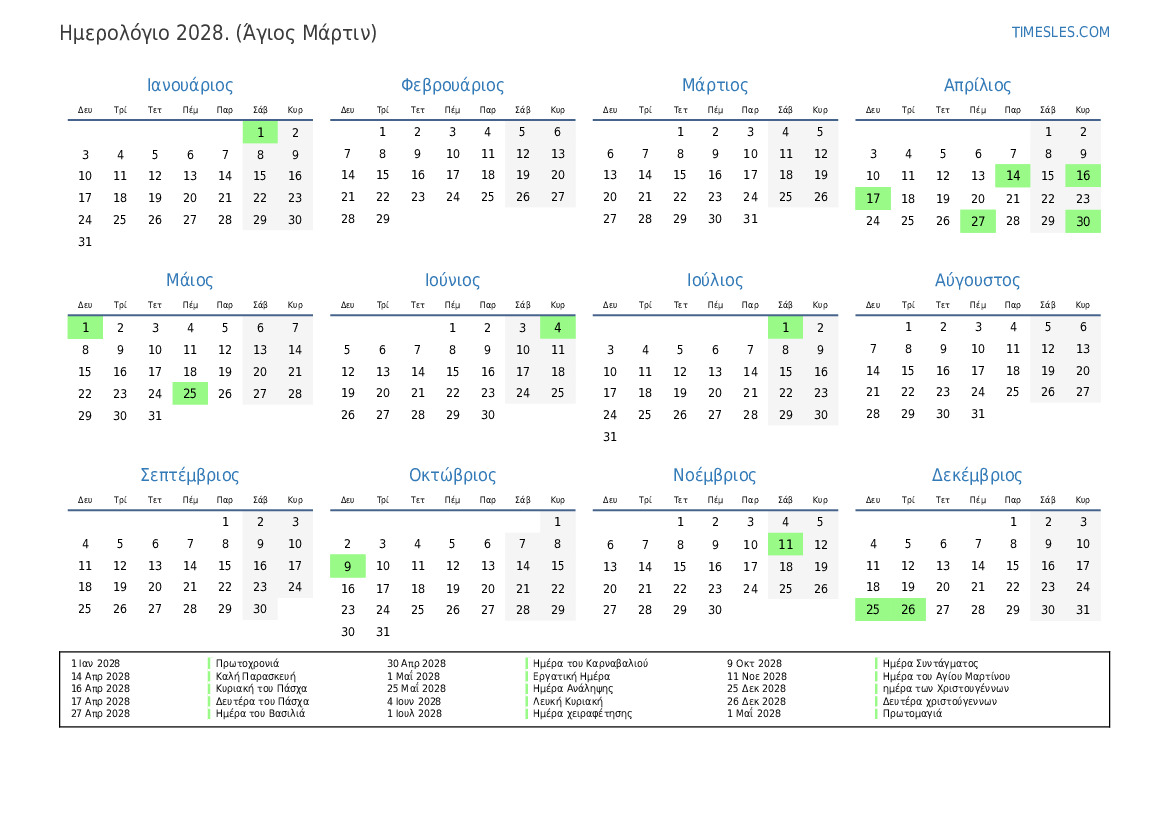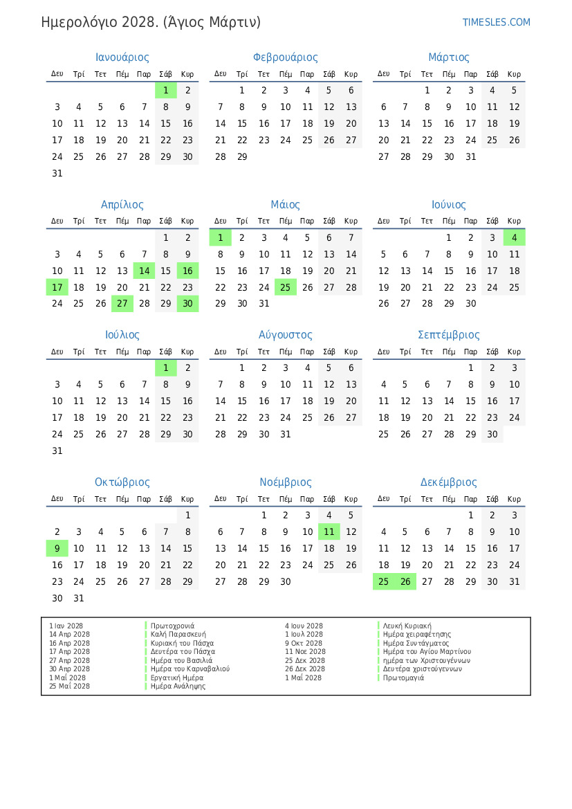 11 Νοε 2028 Ημέρα του Αγίου Μαρτίνου
