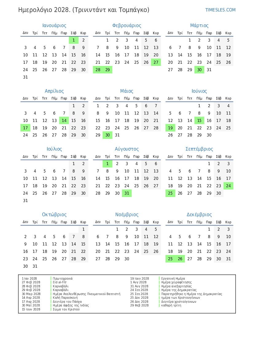 26 Δεκ 2028 Δευτέρα χριστούγεννων