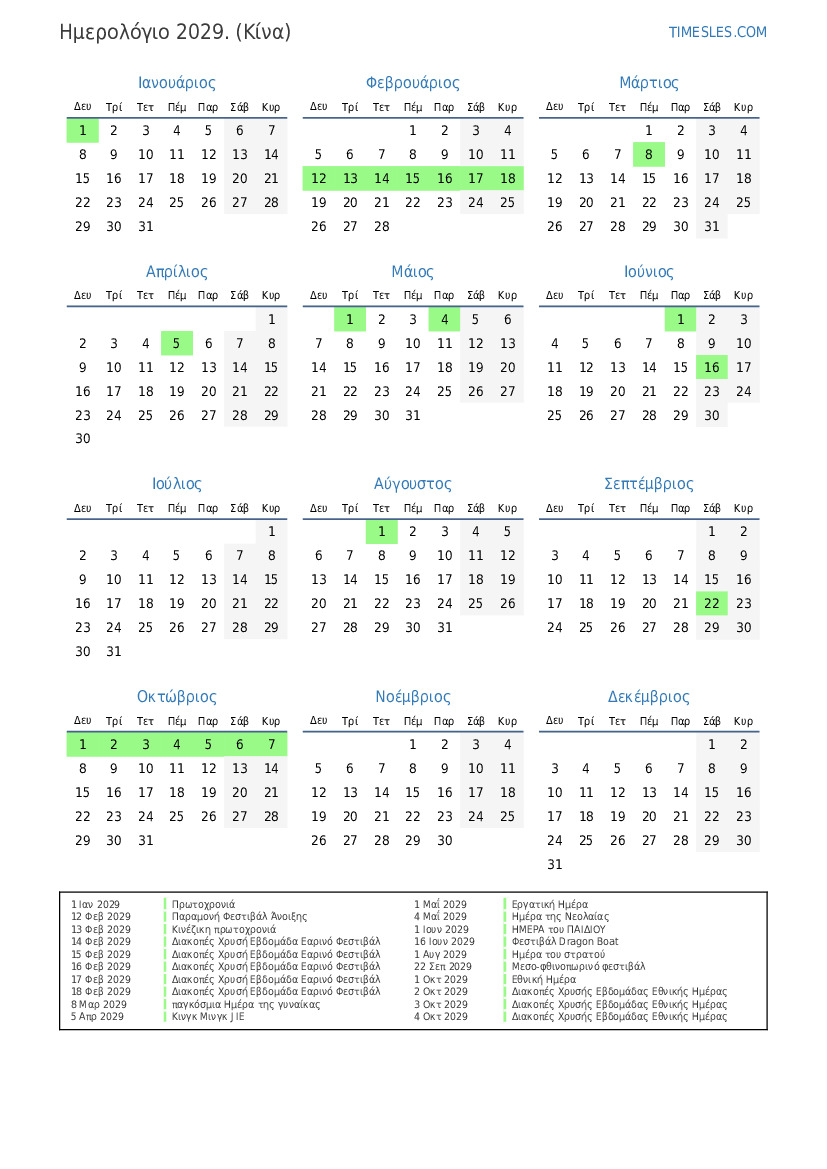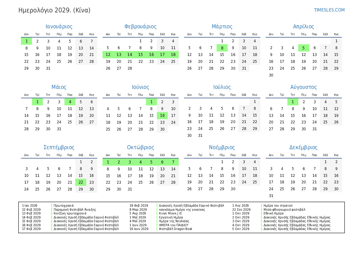 14 Φεβ 2029 Διακοπές Χρυσή Εβδομάδα Εαρινό Φεστιβάλ