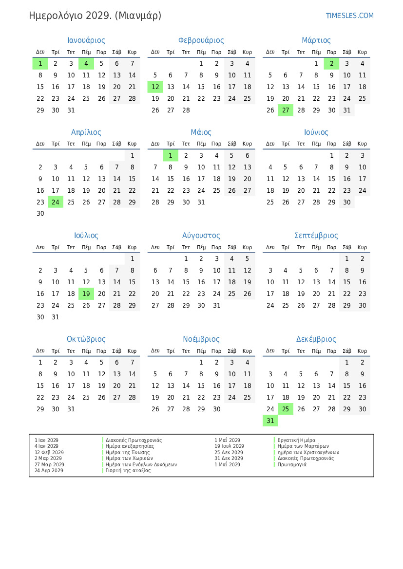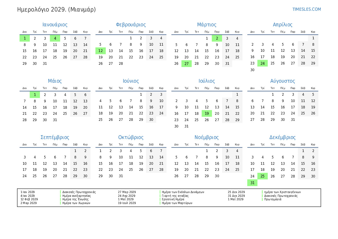 1 Ιαν 2029 Διακοπές Πρωτοχρονιάς