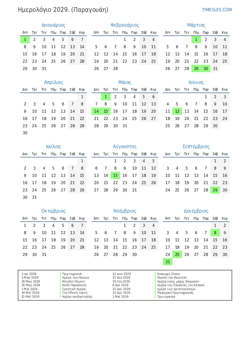 15 Μαΐ 2029 Ημέρα ανεξαρτησίας