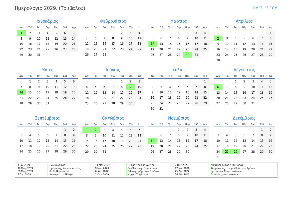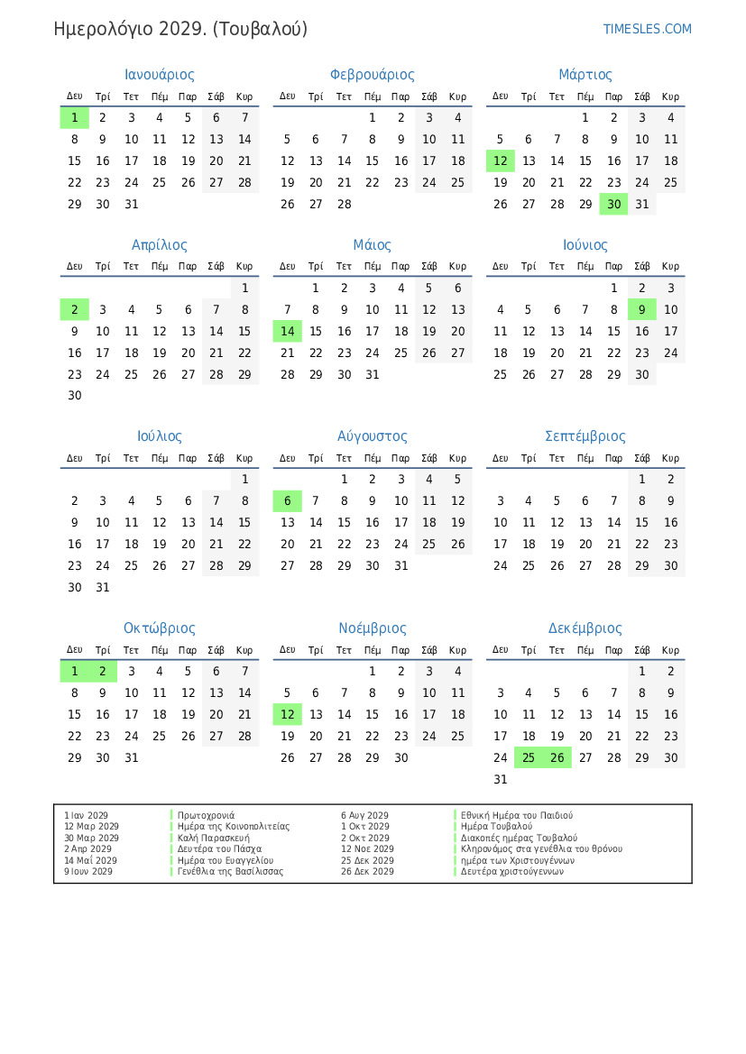 2 Οκτ 2029 Διακοπές ημέρας Τουβαλού