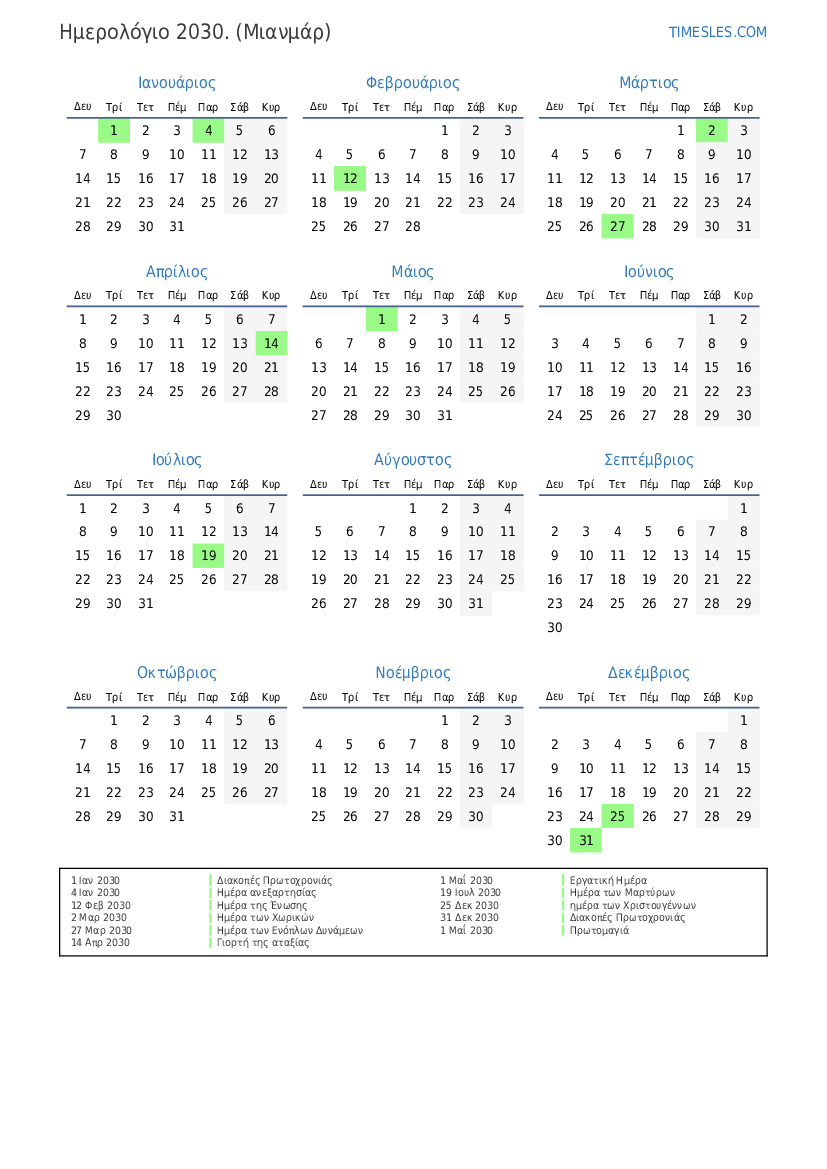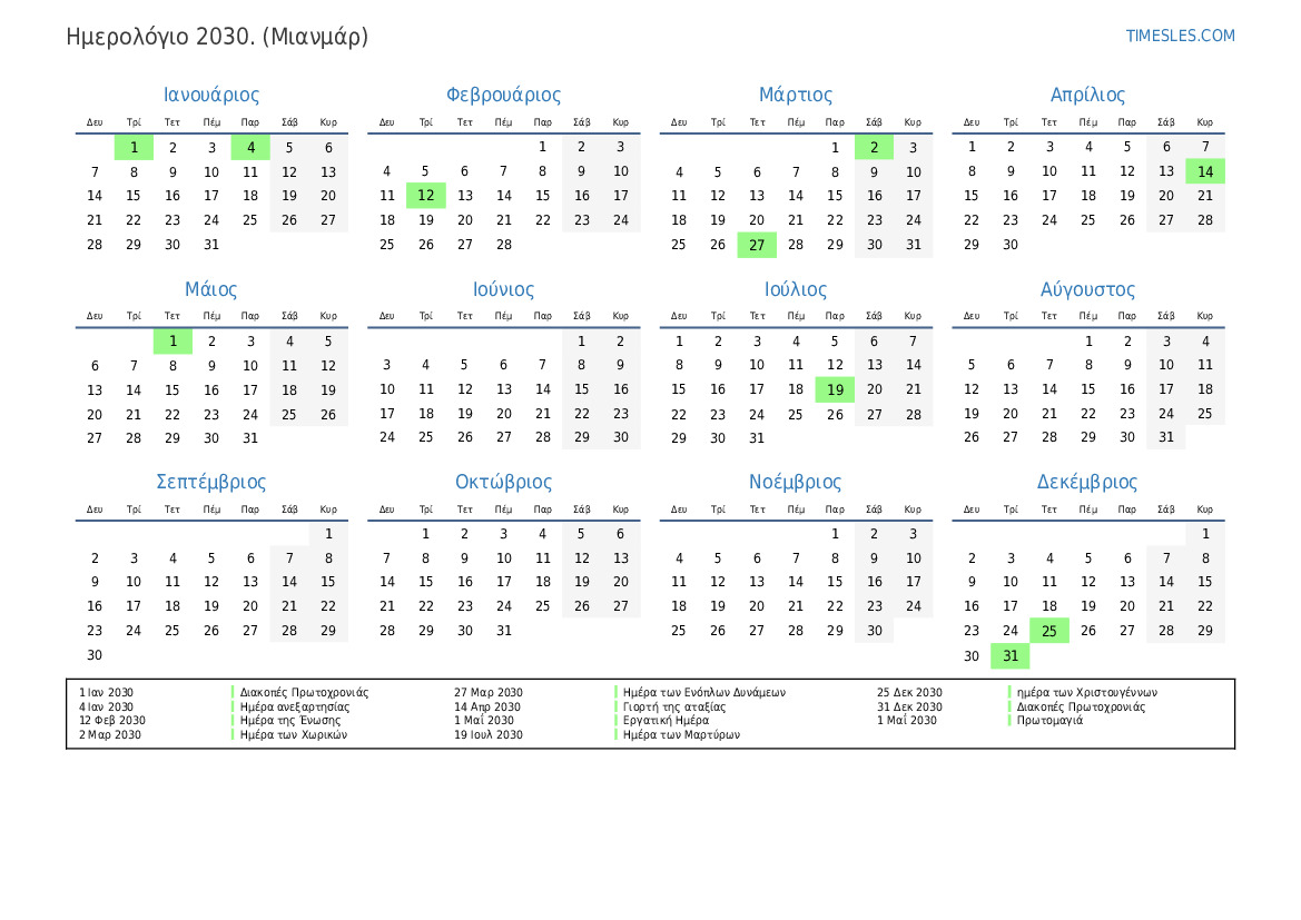 1 Ιαν 2030 Διακοπές Πρωτοχρονιάς