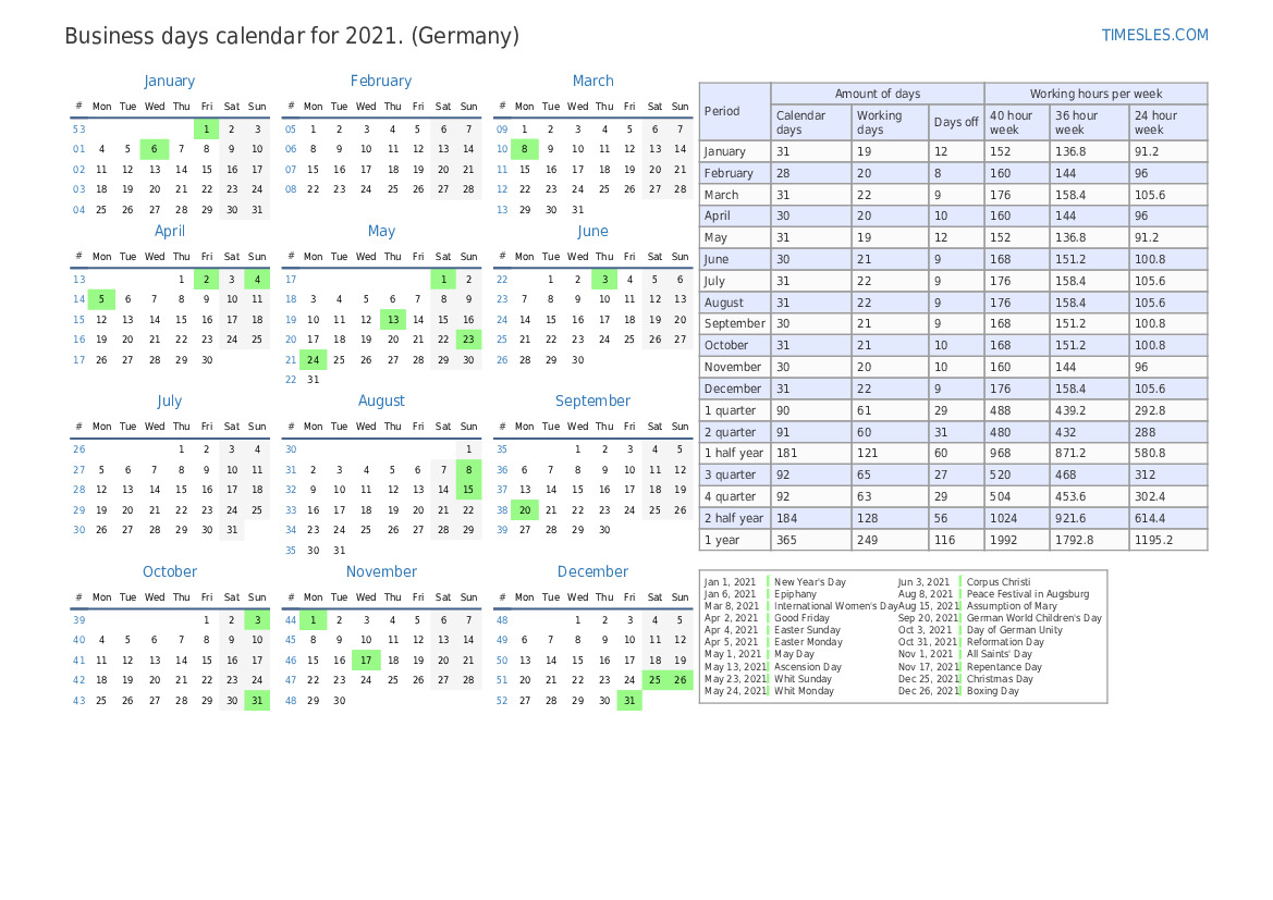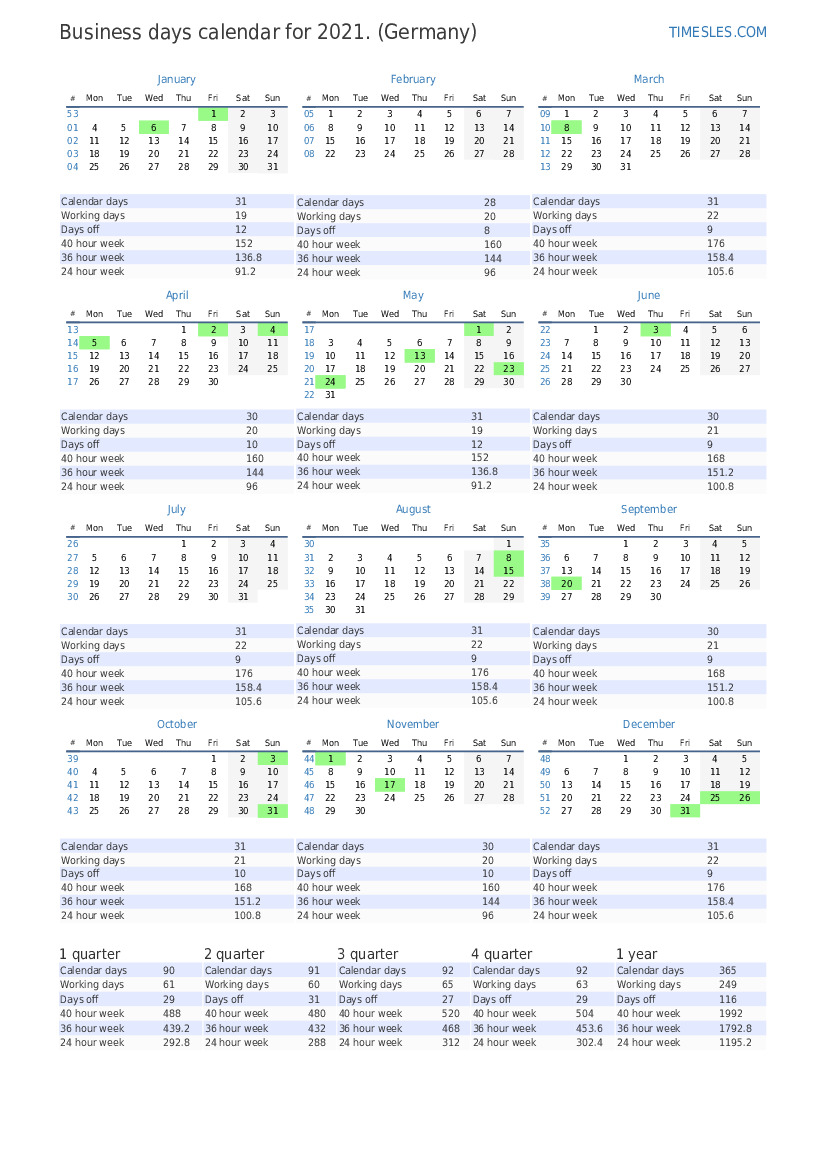 3 quarter calendar 2021 for Germany