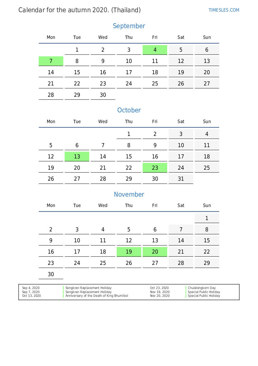 Sep 4, 2020 Songkran Replacement Holiday