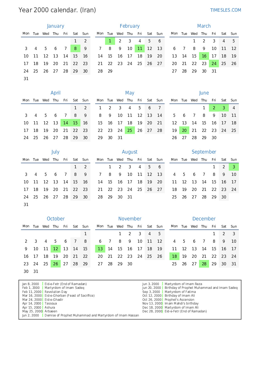 Jan 8, 2000 Eid-e-Fetr (End of Ramadan)