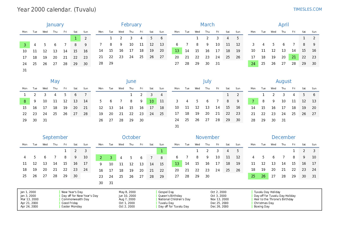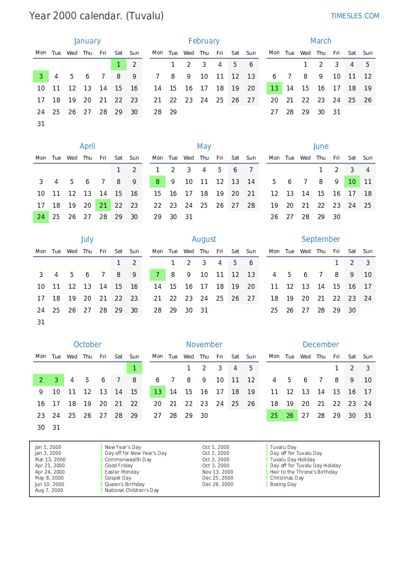 Oct 3, 2000 Day off for Tuvalu Day Holiday