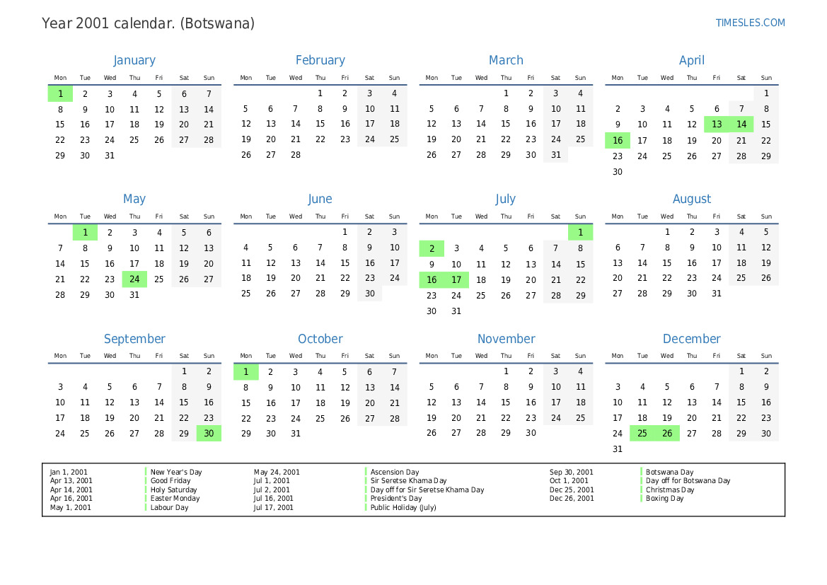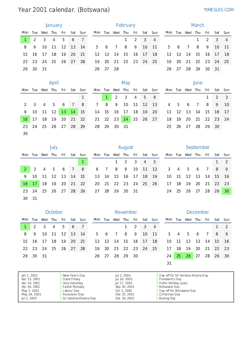 Jul 2, 2001 Day off for Sir Seretse Khama Day