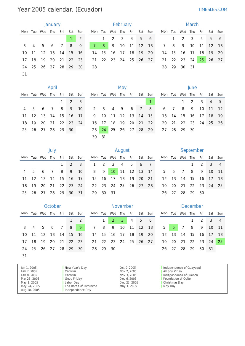 Feb 12, 2005 Special working day (compensation for Carnival Monday)