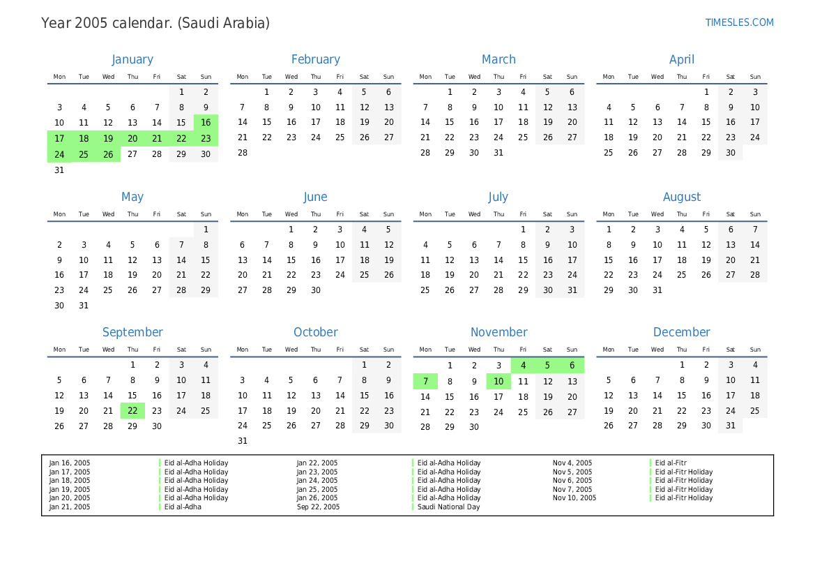 Nov 8, 2005 Eid al-Fitr Holiday (public sector only)