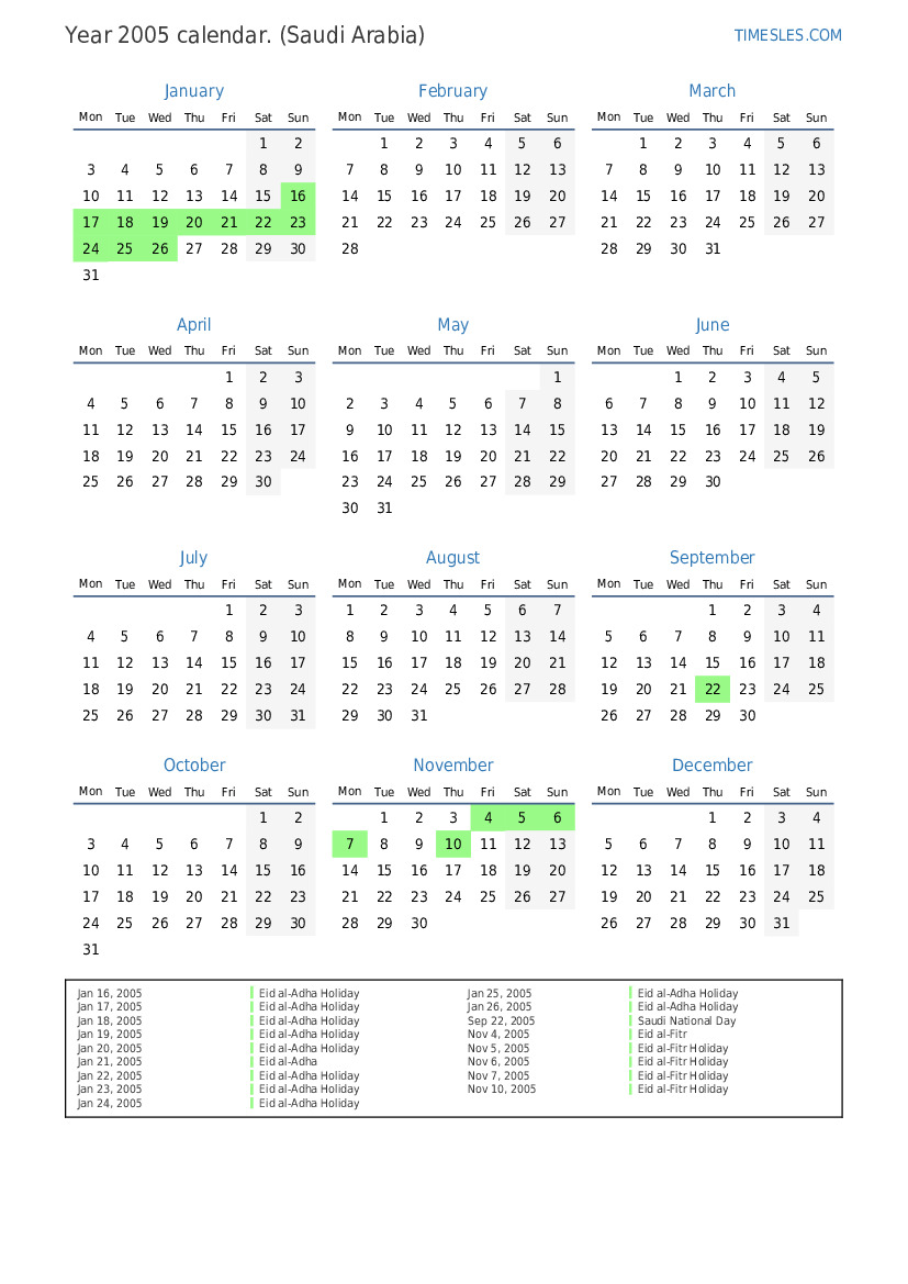 Nov 9, 2005 Eid al-Fitr Holiday (public sector only)